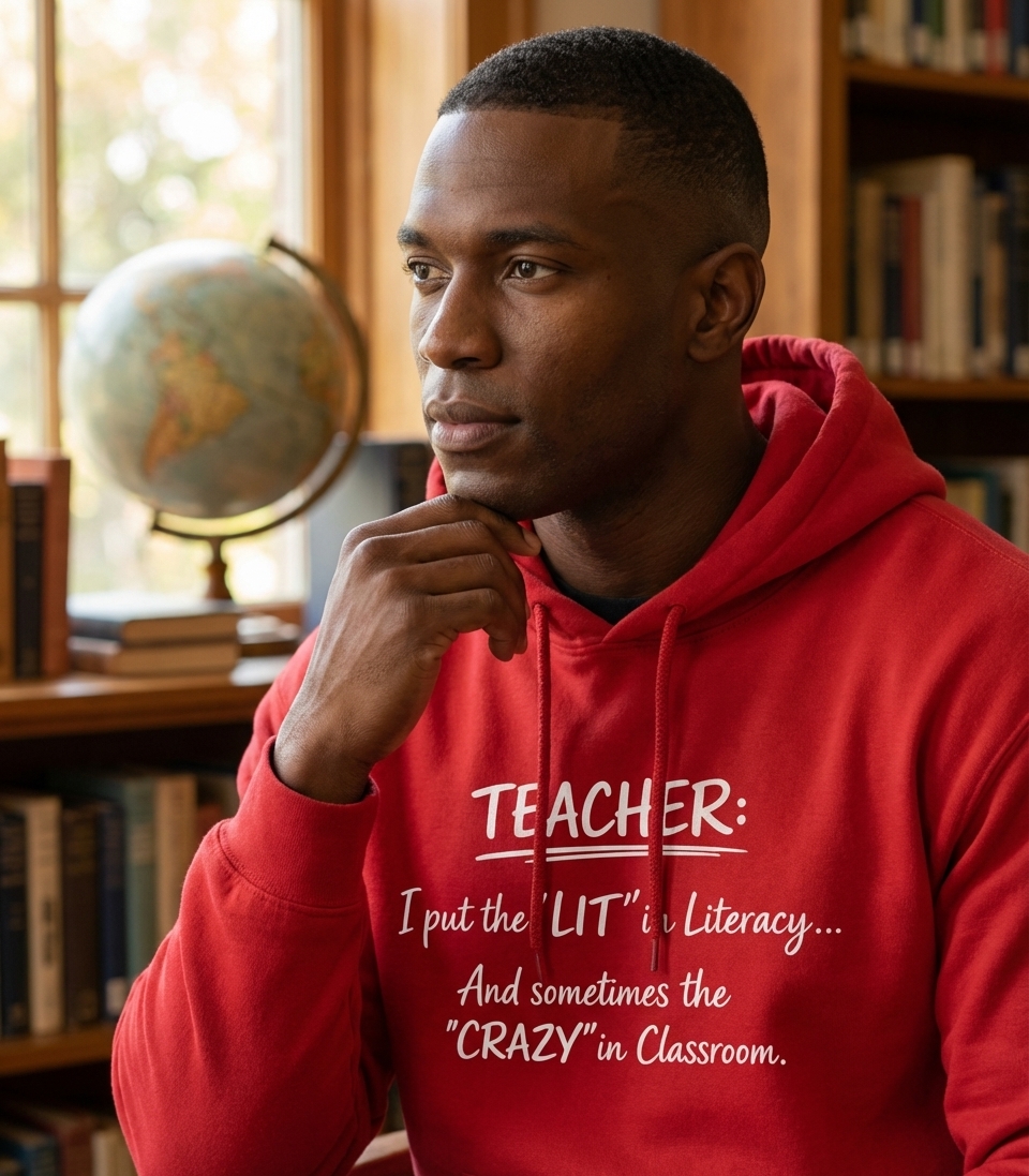 The phrase "I put the 'LIT' in Literacy... And sometimes the 'CRAZY' in Classroom" is a humorous take on the dual role of a teacher. It acknowledges their dedication to inspiring a love for reading and learning, while also playfully admitting to the energetic, sometimes chaotic, nature of managing a classroom full of students.