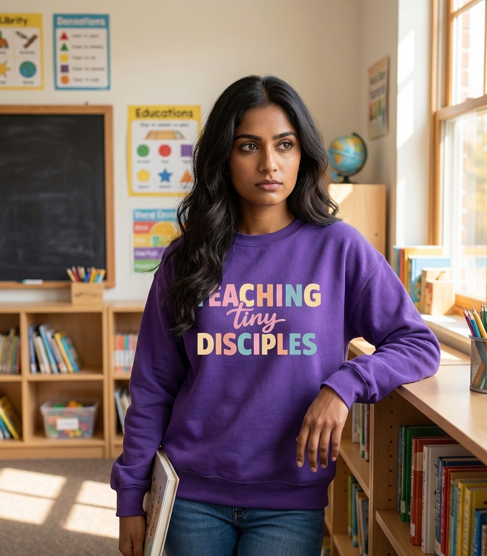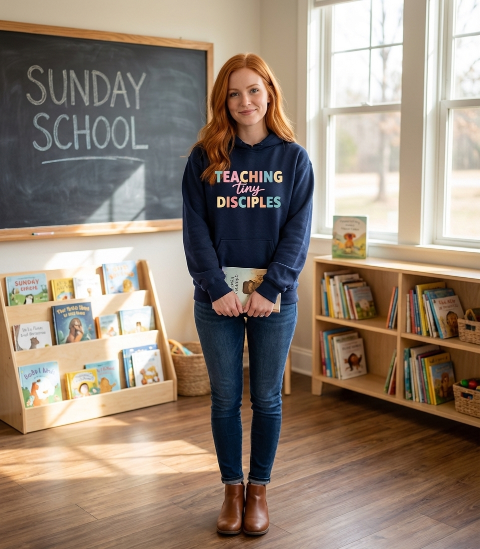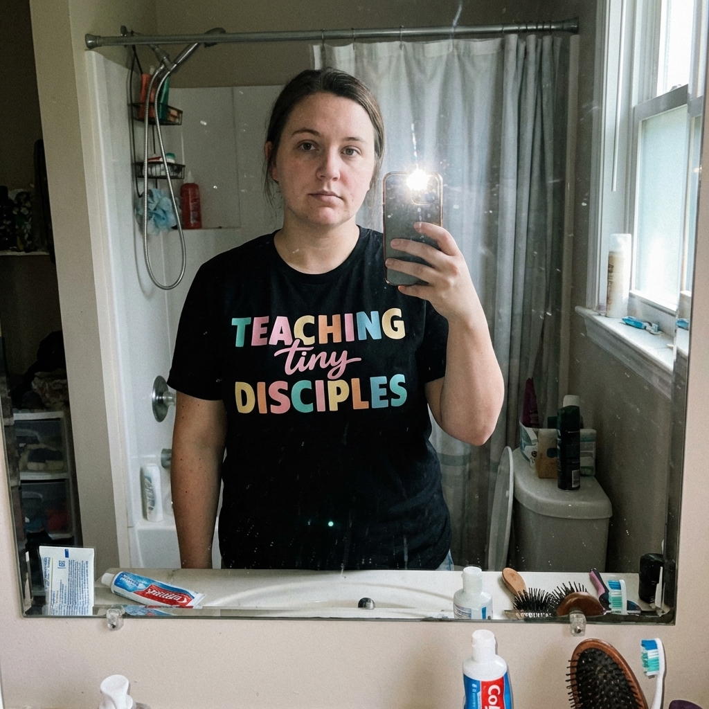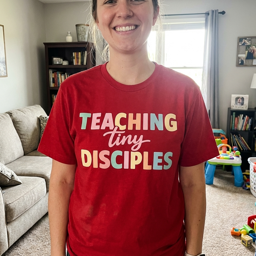 The "Teaching Tiny Disciples" phrase captures the lifestyle of dedicated faith educators who spend their days guiding young minds, sharing scripture, and fostering spiritual growth.