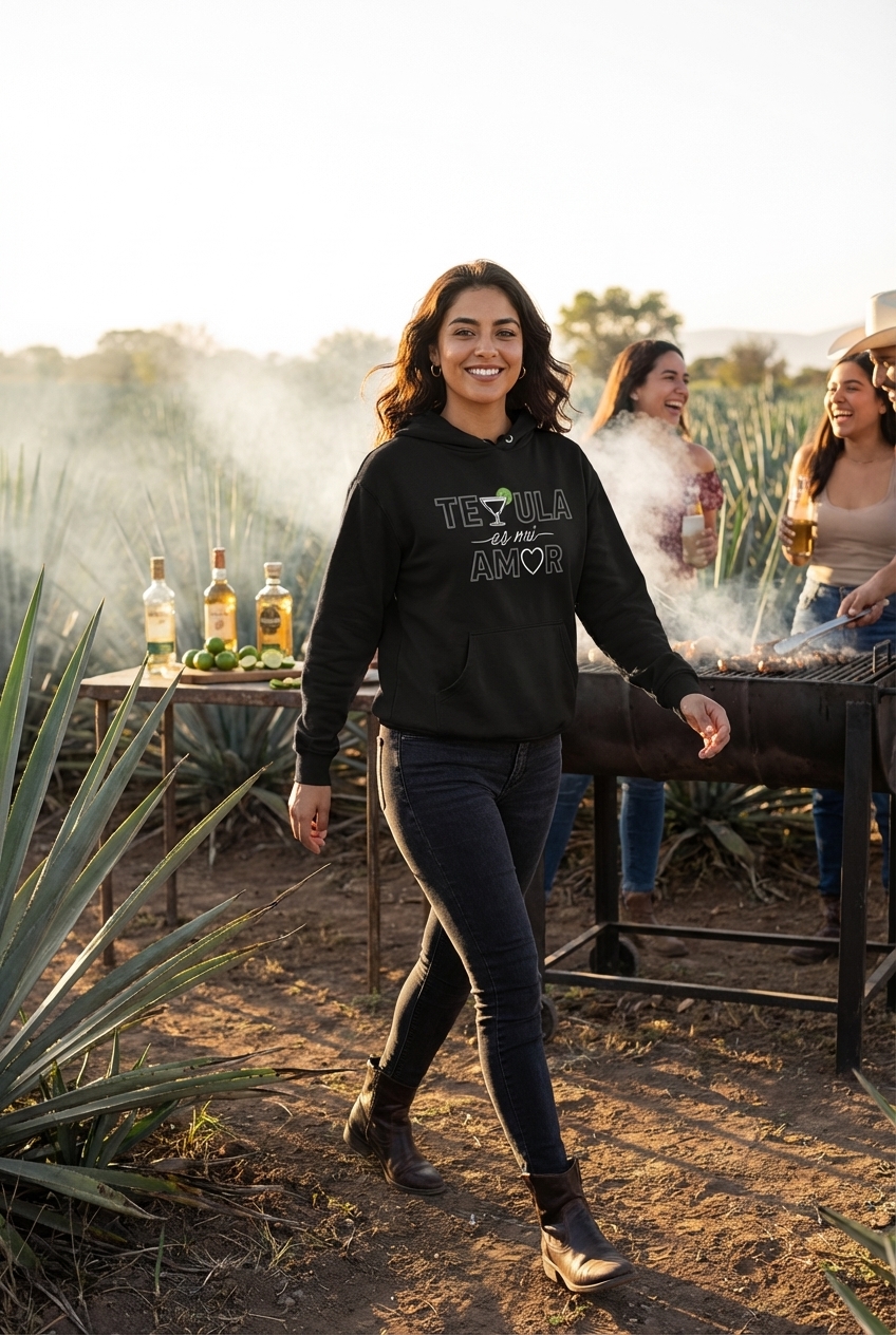 The "Tequila Es Mi Amor" phrase captures the lifestyle of passionate tequila enthusiasts who spend their days enjoying spirits, celebrating with friends, and embracing vibrant culture.