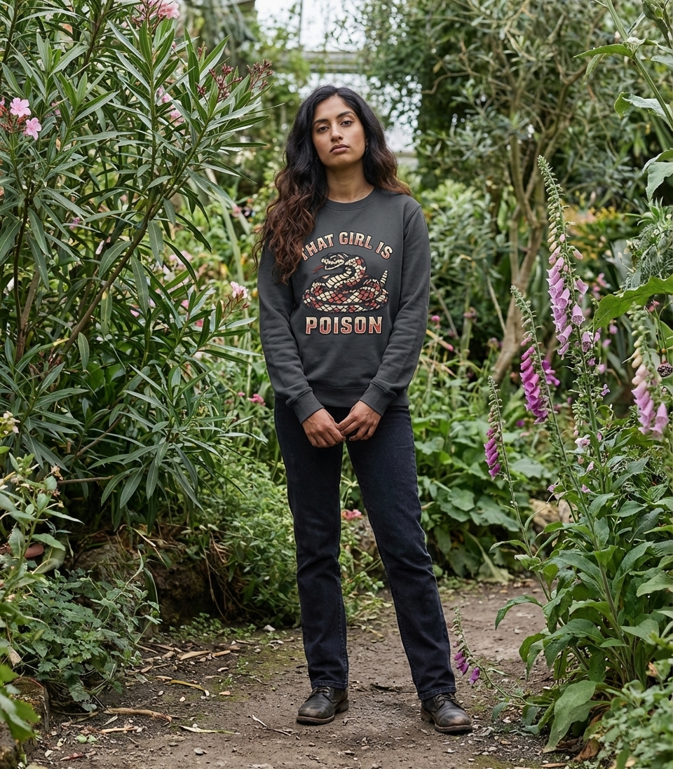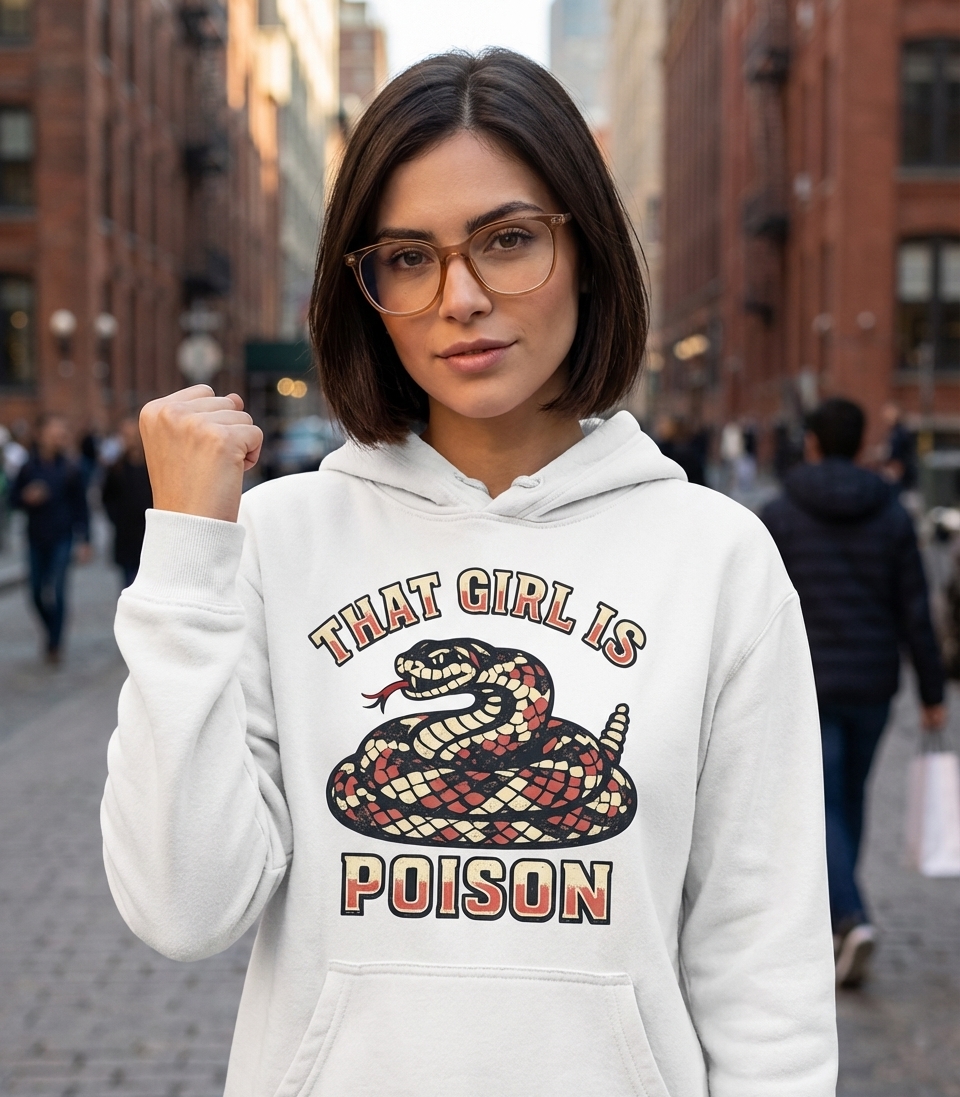 The 'That Girl Is Poison' phrase captures the lifestyle of strong, confident women who embrace their edgy side, make bold statements, and command attention.