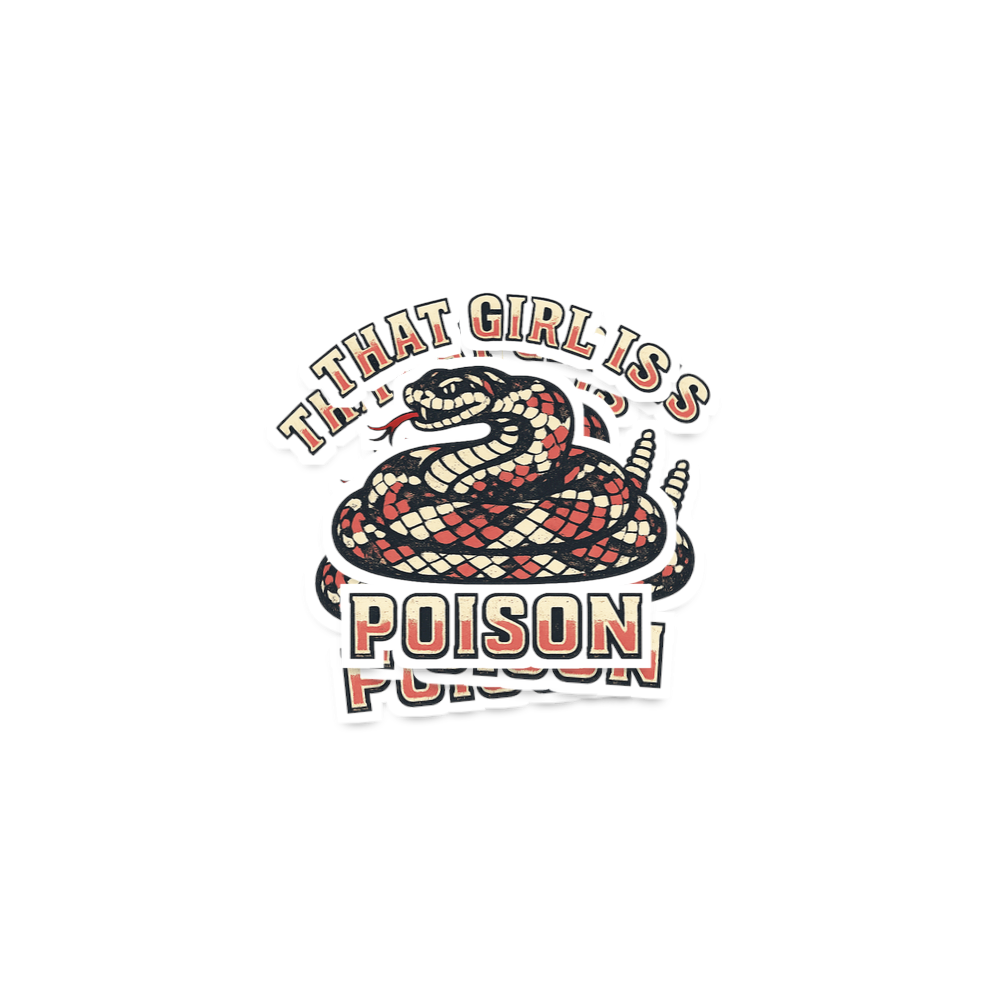 The core phrase 'That Girl Is Poison' is an assertive declaration, often used to describe a woman with an alluring, dangerous, or captivating personality. It speaks to an unapologetically fierce individual whose presence is undeniable and memorable. The snake imagery reinforces this powerful symbolism.