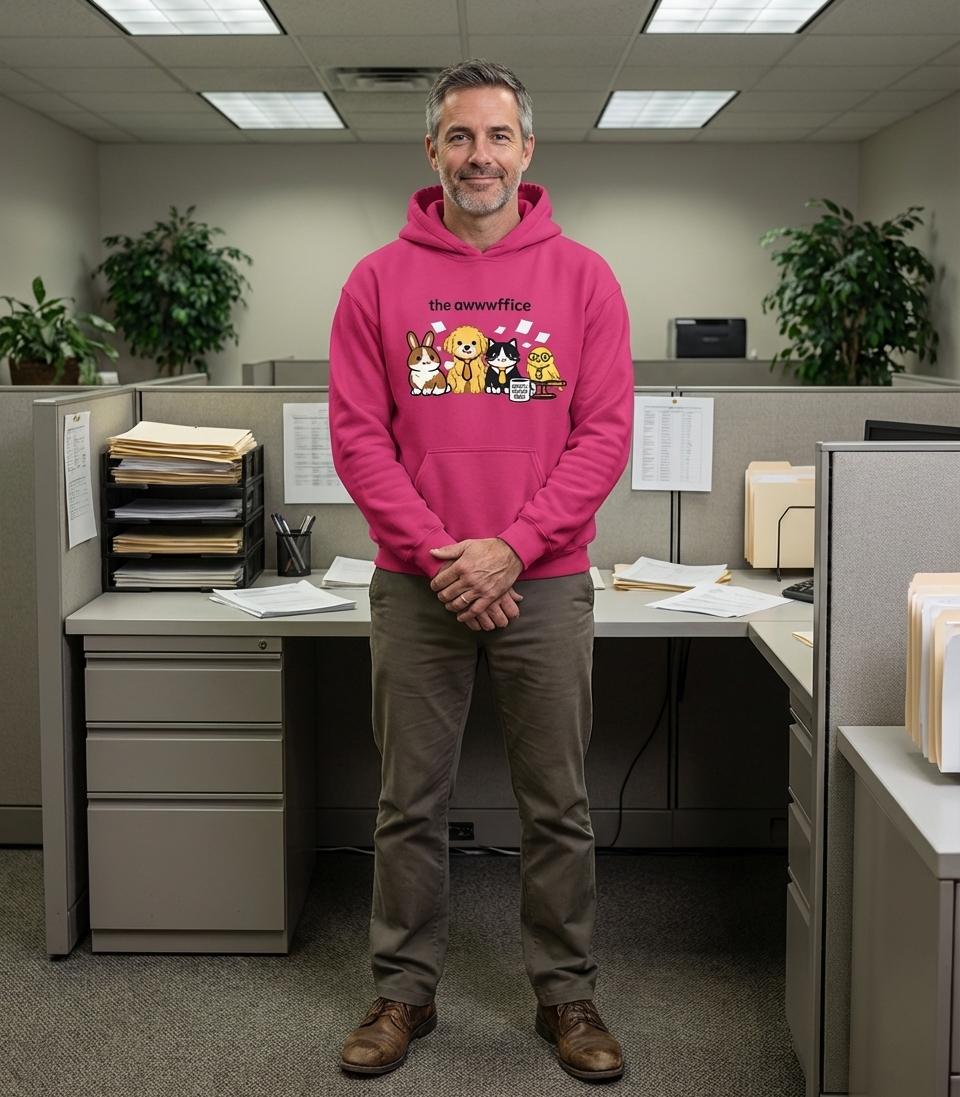 The Awwwffice phrase captures the lifestyle of passionate pet owners who spend their days working, laughing at office jokes, and appreciating adorable animal companions.