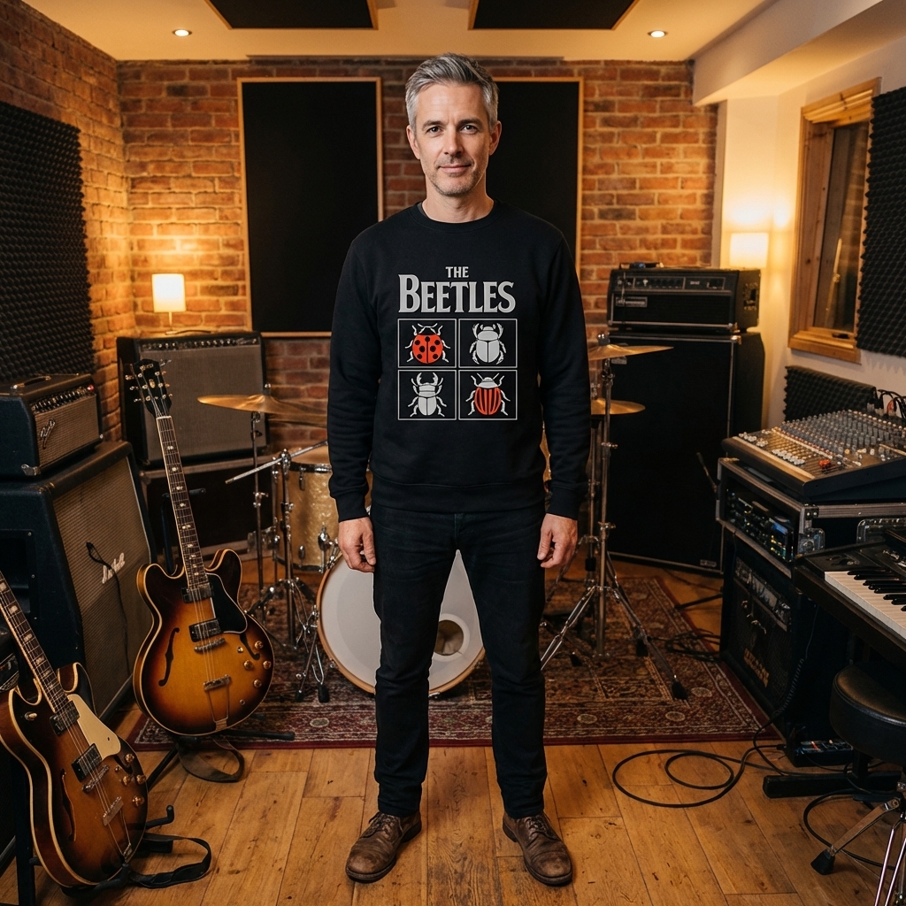 The 'The Beetles Bug Band' phrase captures the lifestyle of music lovers who appreciate classic rock, clever puns, and entomological flair.