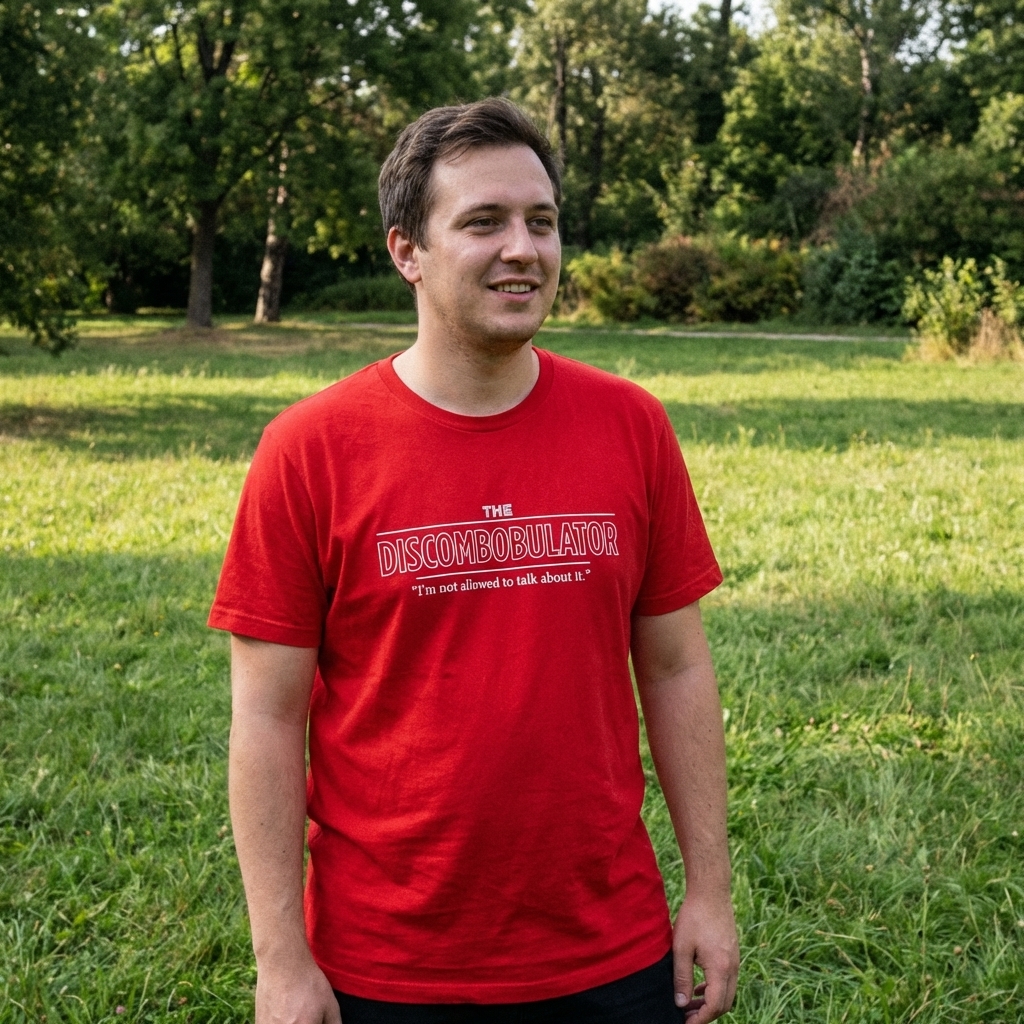 whoa this shirt is actually super soft, nice surprise! the 'discombobulator secret' design is way cooler in person, really dig the abstract vibe it's got going on. definitely a new favorite.