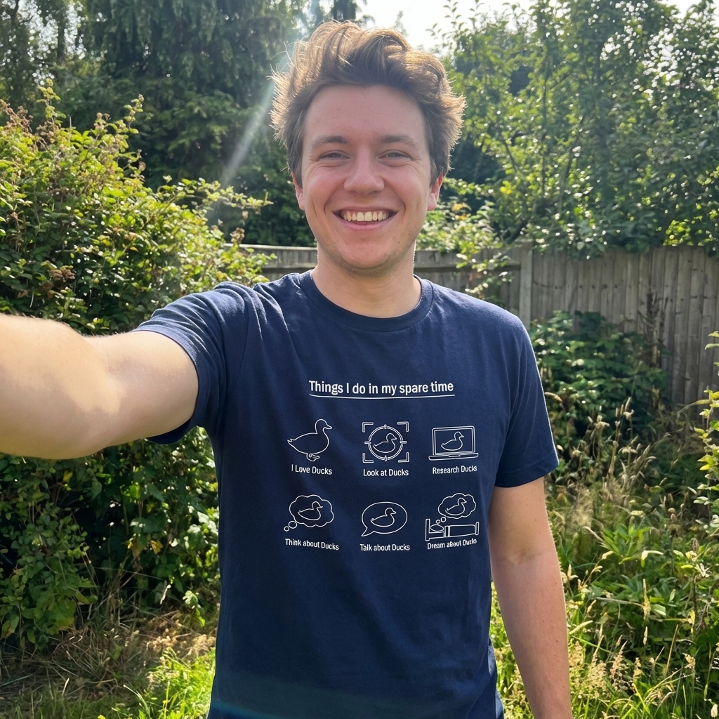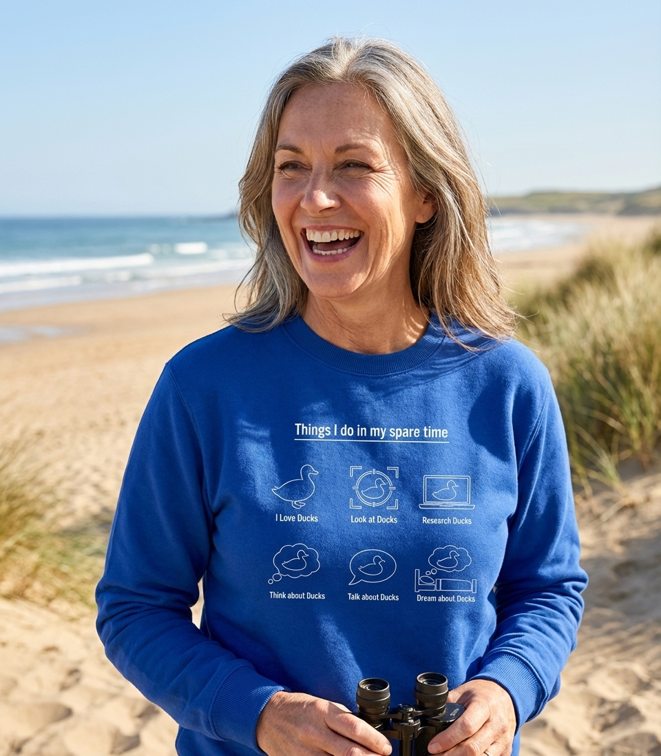 This design captures the lifestyle of passionate duck enthusiasts who spend their days loving, looking at, and researching their favorite feathered friends.