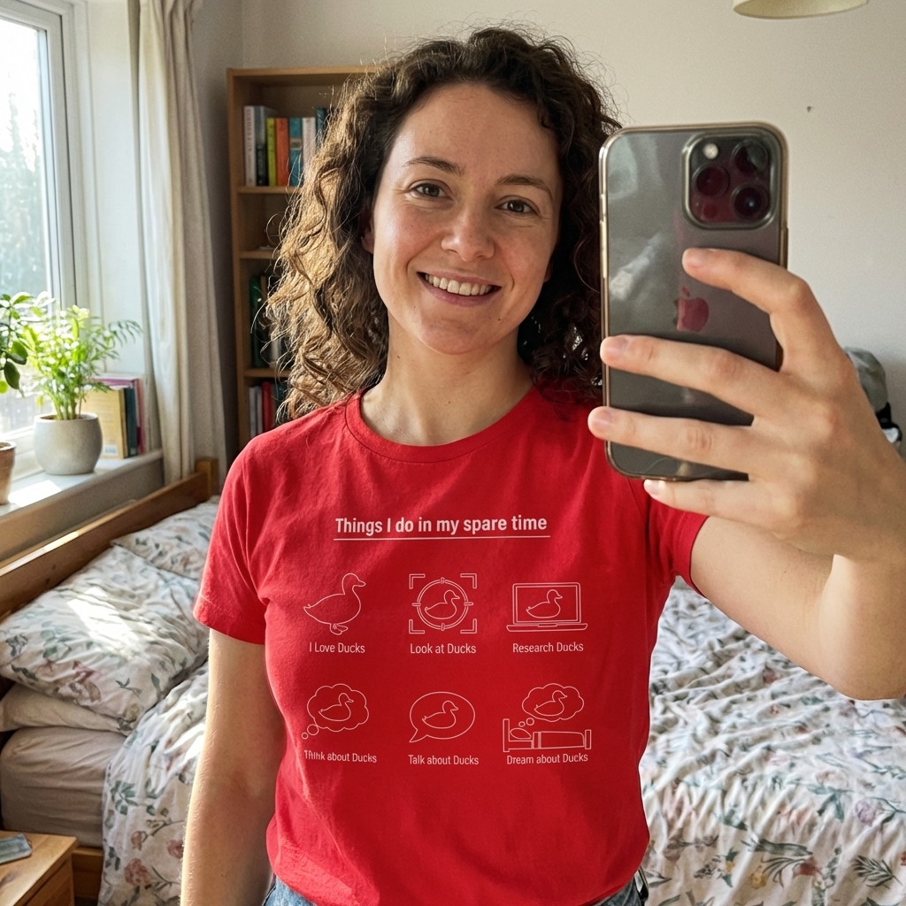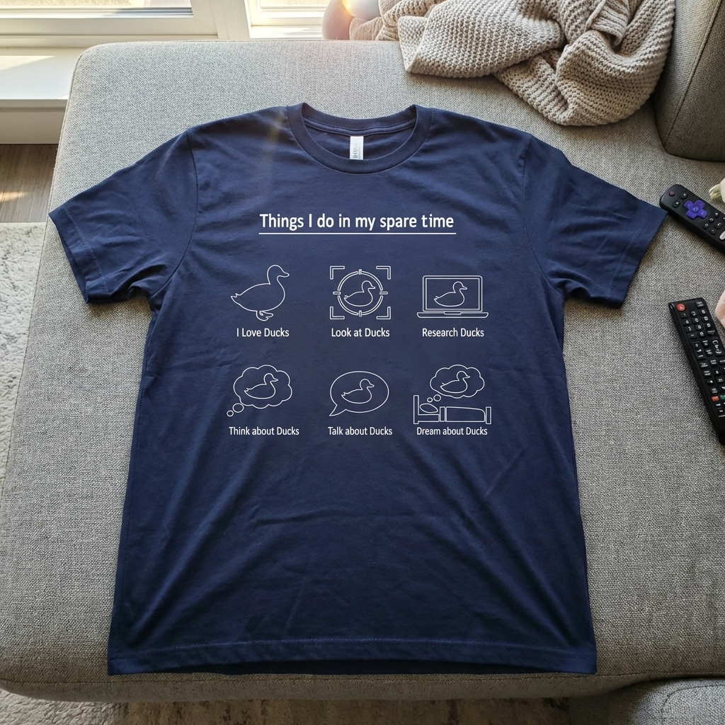 Love this tee! The 'Spare Time Ducks' design is so unique and quirky, definitely my kind of vibe. It's super soft too, perfect for just chilling or running errands.