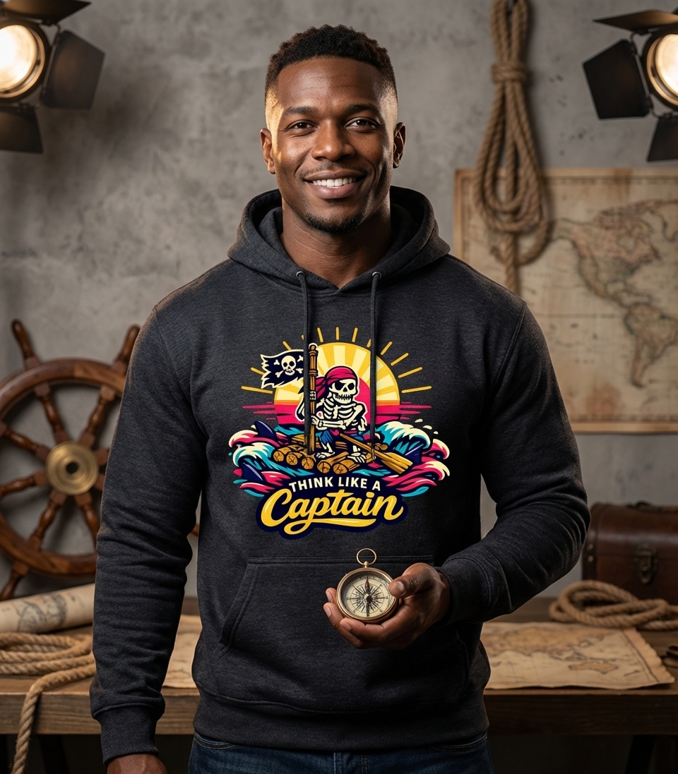 Yes! Check the style selector above to see all available options including hoodies and sweatshirts for the Think Like A Captain graphic.