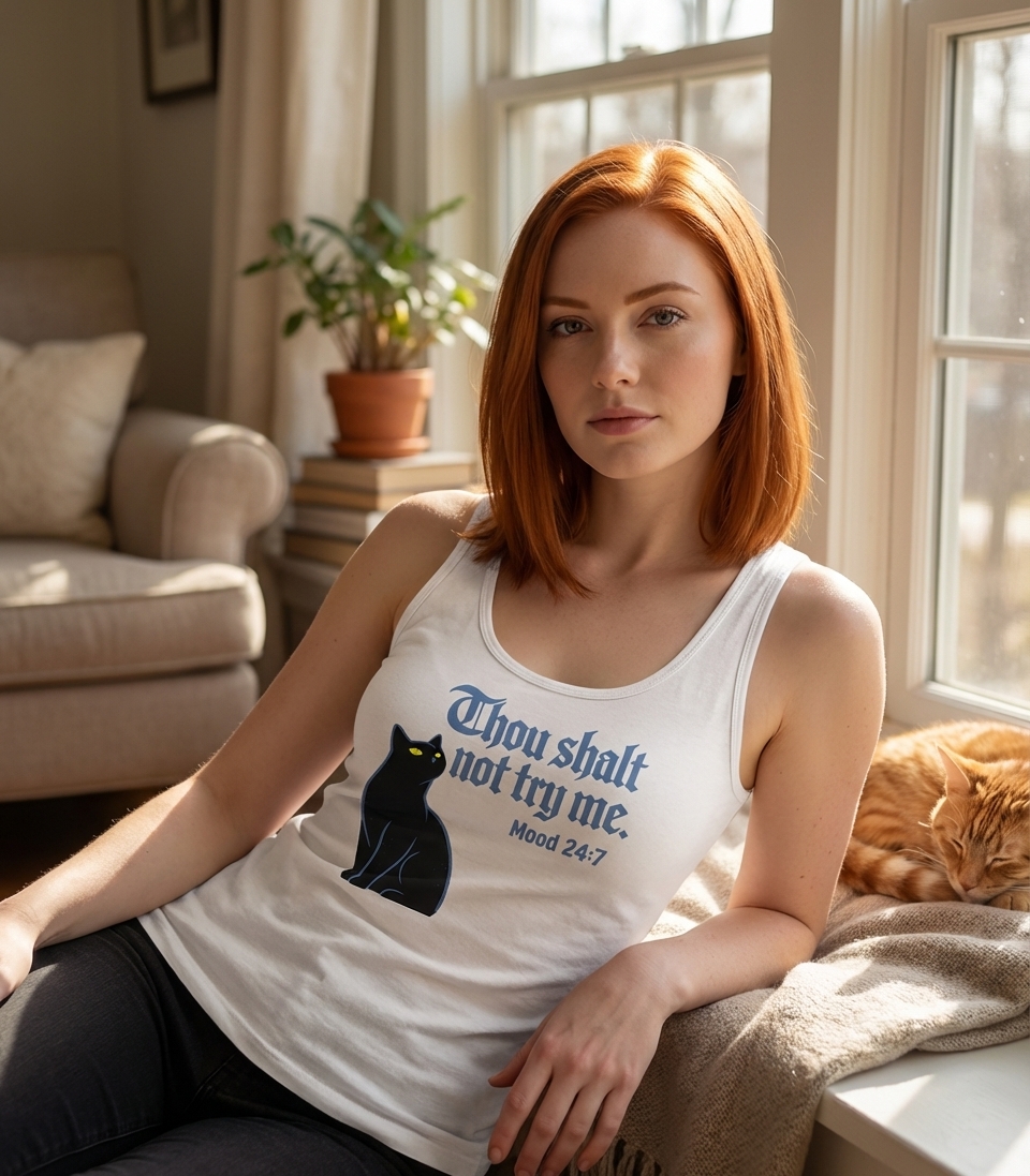 The "Thou shalt not try me" phrase captures the lifestyle of passionate cat lovers who appreciate witty humor, value their personal space, and express their true mood.