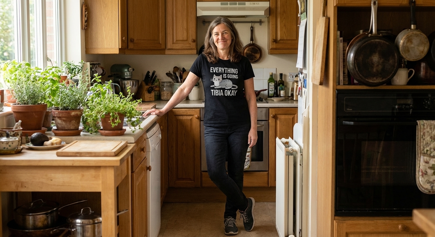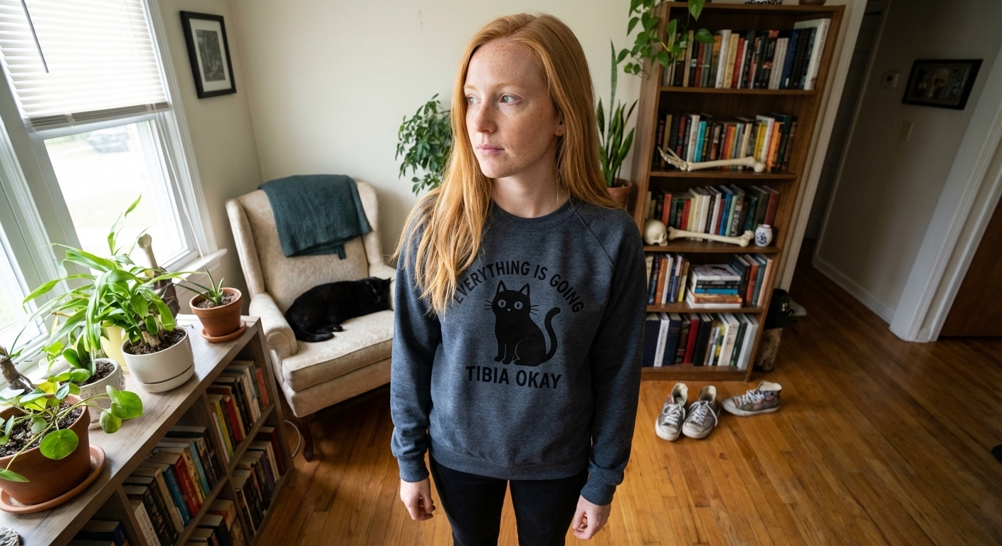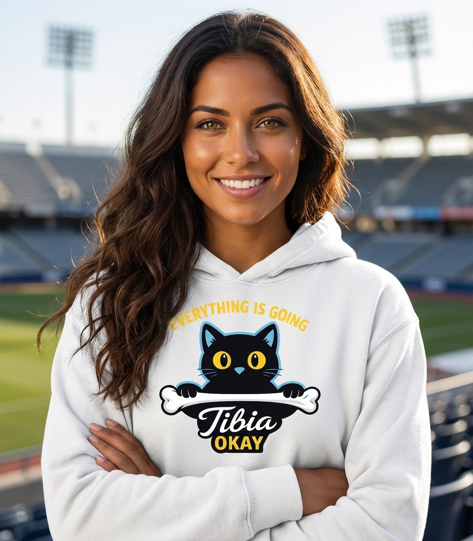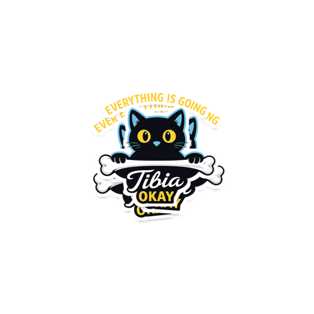 The "Everything is Tibia Okay" phrase captures the lifestyle of optimistic cat lovers and medical professionals who appreciate clever wordplay.