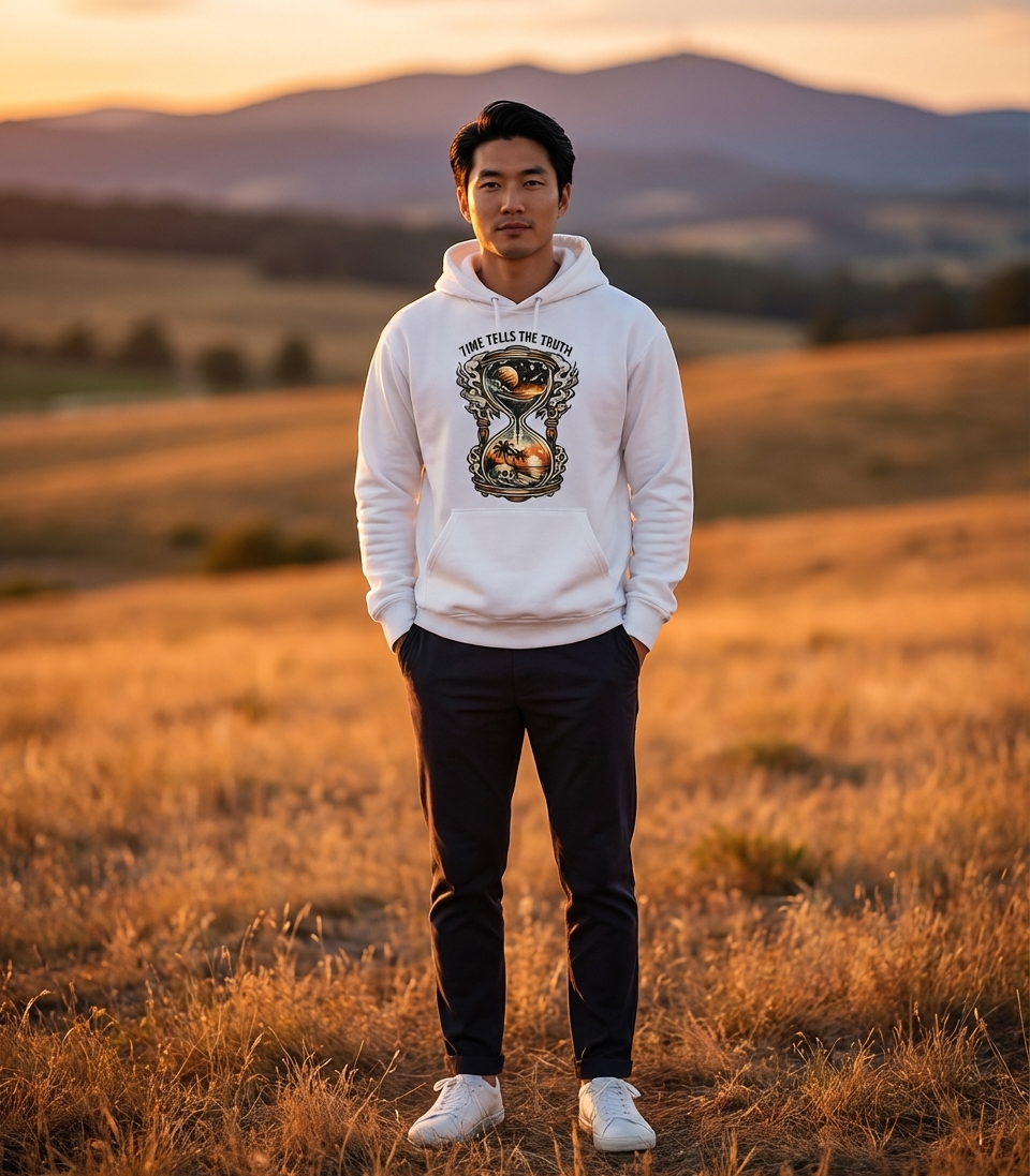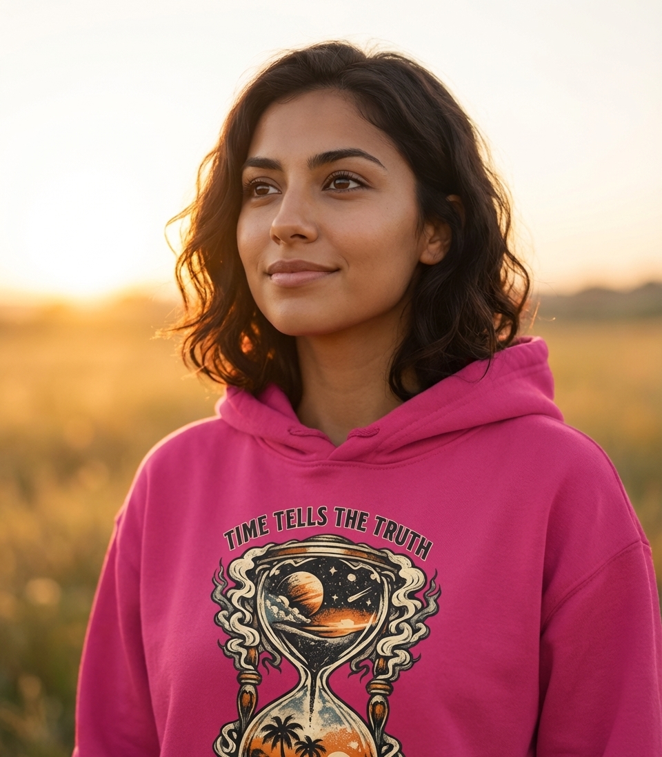 The "Time Tells The Truth" phrase captures the lifestyle of introspective thinkers who appreciate deep meanings, vintage aesthetics, and the grand journey of existence.