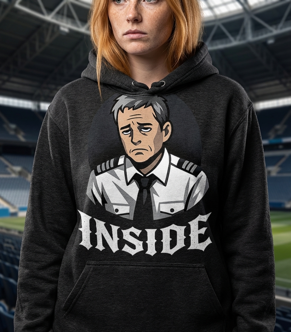 The artwork features a cartoon pilot with a melancholic expression, rendered in a clean, vector art style. The color palette is subdued, focusing on grays, whites, and muted skin tones, which emphasizes the character's weariness. The text 'WAKE ME UP INSIDE' uses a gothic, distressed font that contrasts with the simple character art, enhancing the humorous and slightly dramatic mood.