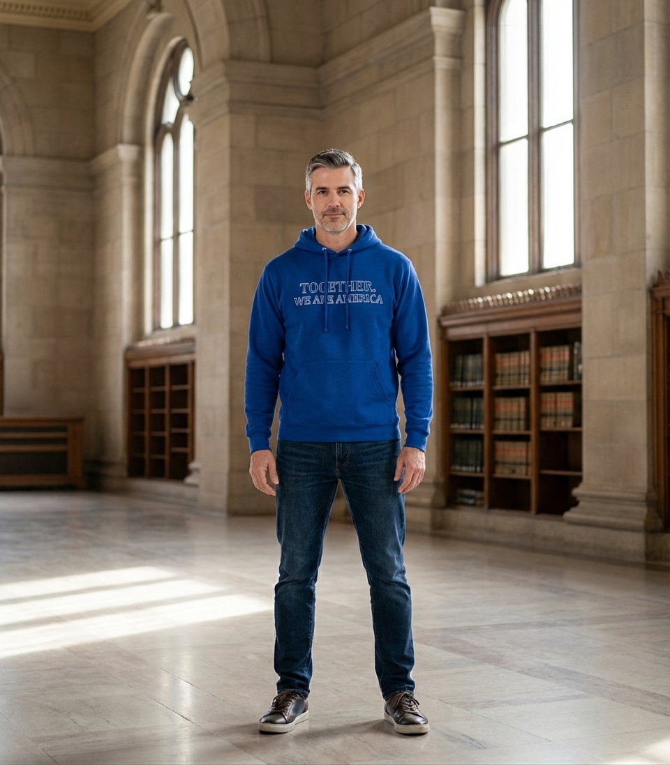 The 'Together We Are America' phrase captures the spirit of united citizens who believe in collective strength, shared values, and national identity.