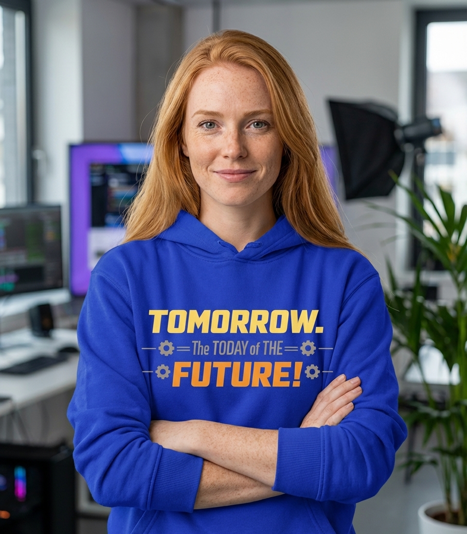 The "Tomorrow. The TODAY of THE FUTURE!" phrase captures the mindset of proactive individuals who embrace each day as an opportunity to shape what's ahead.