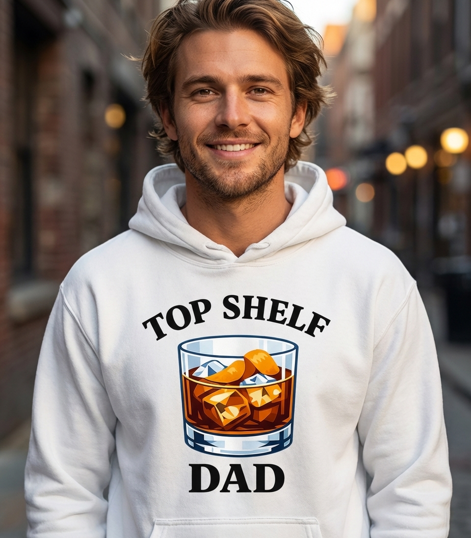 Yes! Check the style selector above to see all available options including hoodies and sweatshirts for the Top Shelf Dad Whiskey graphic.