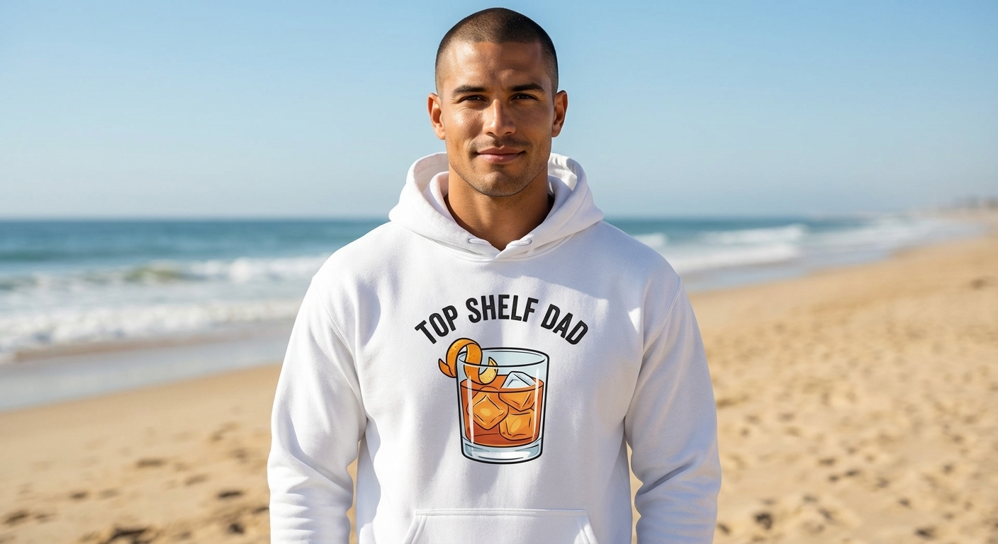 The "Top Shelf Dad" phrase captures the lifestyle of exceptional fathers who appreciate fine tastes, relaxing moments, and being celebrated as the best.