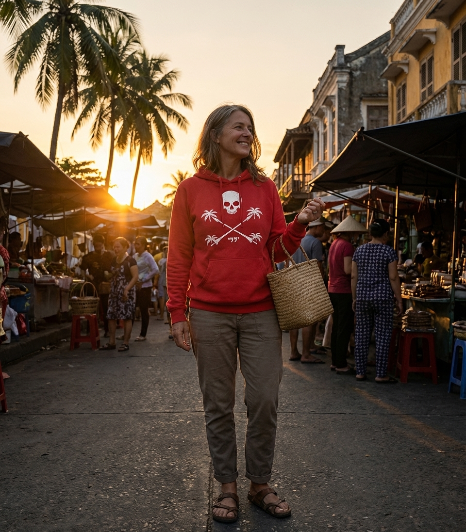 This bold design captures the lifestyle of adventurous travelers who explore exotic locales, embrace defiant spirits, and live for island escapades.