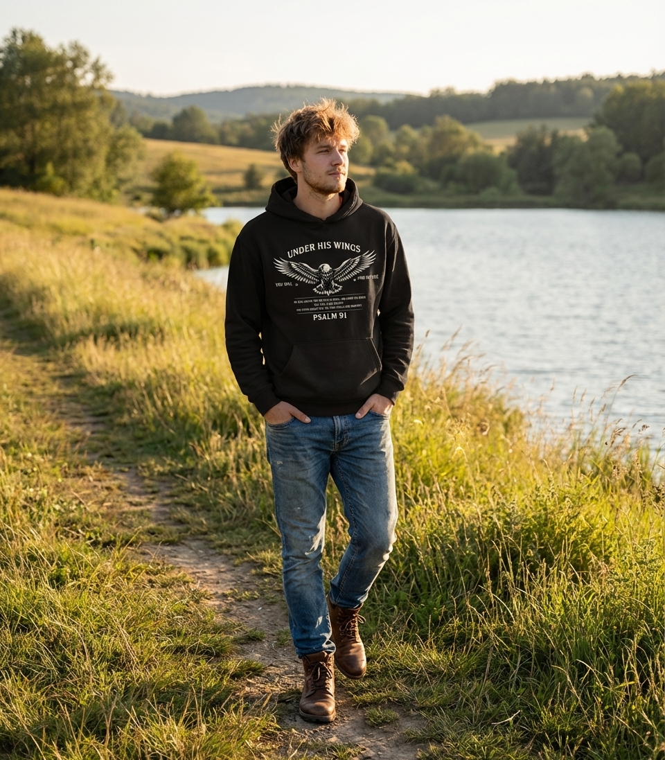 Yes! Check the style selector above to see all available options including hoodies and sweatshirts for the Under His Wings Psalm 91 graphic.