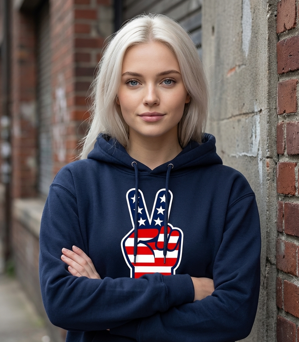 The American Peace Sign design captures the spirit of proud patriots who celebrate unity, freedom, and national pride.
