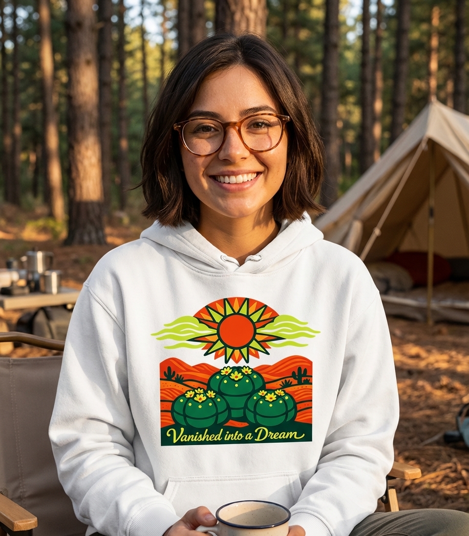 The 'Vanished into a Dream' phrase captures the lifestyle of desert explorers who spend their days seeking tranquility, observing unique flora, and embracing the vastness of nature.