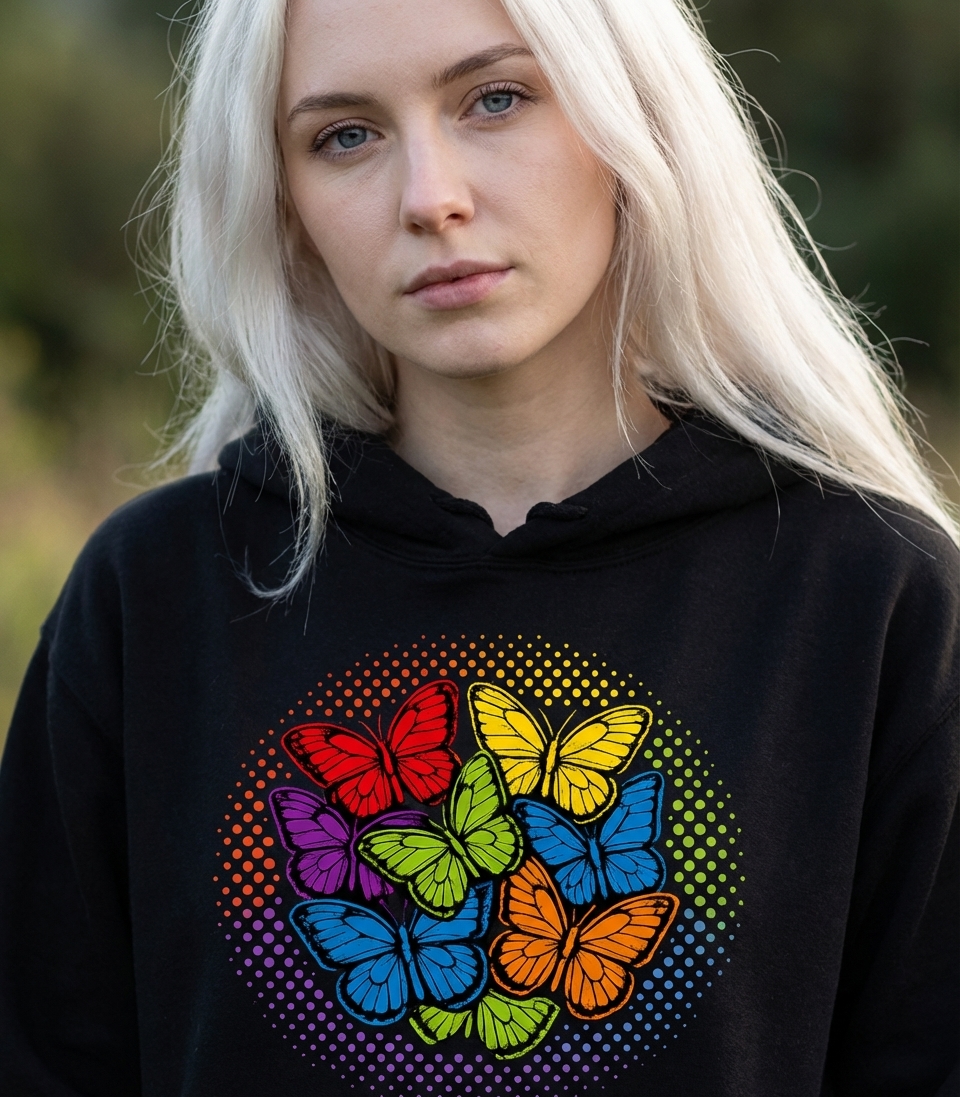 Rainbow Butterflies Circle Hooded Sweatshirt