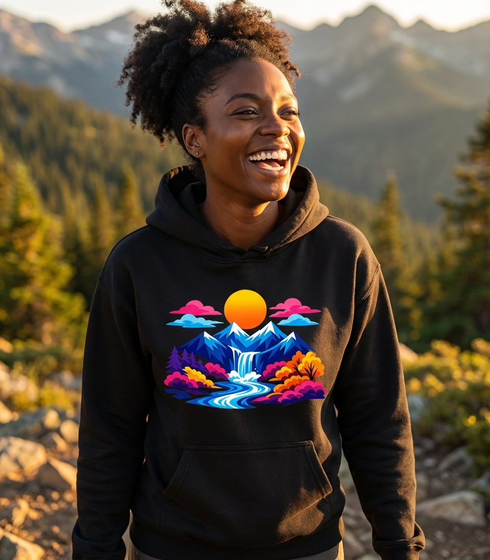 Vibrant Mountain Landscape Hooded Sweatshirt