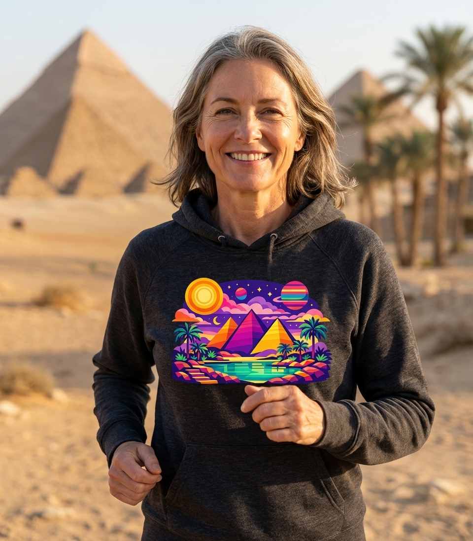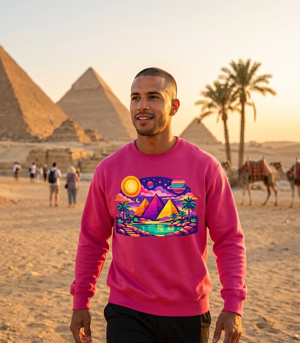 - Unique graphic tees with pyramids