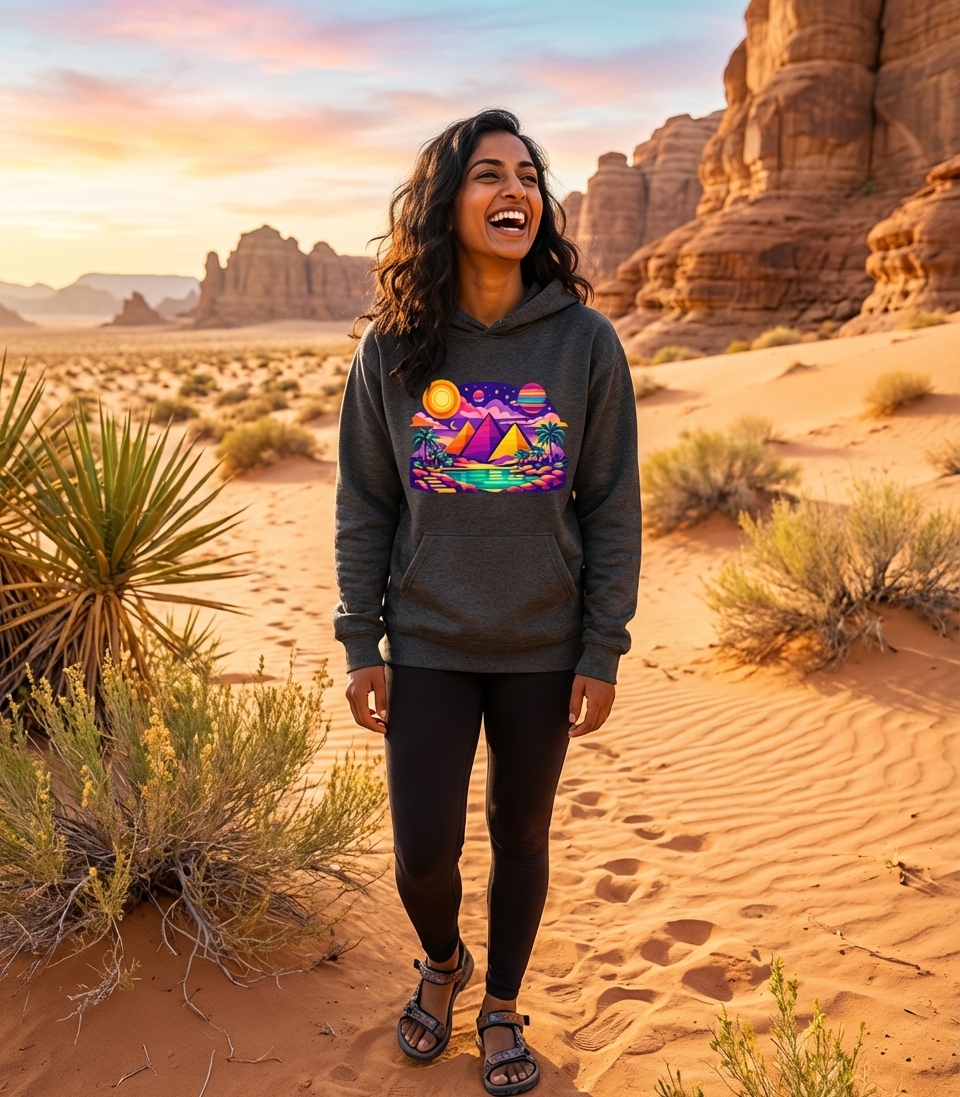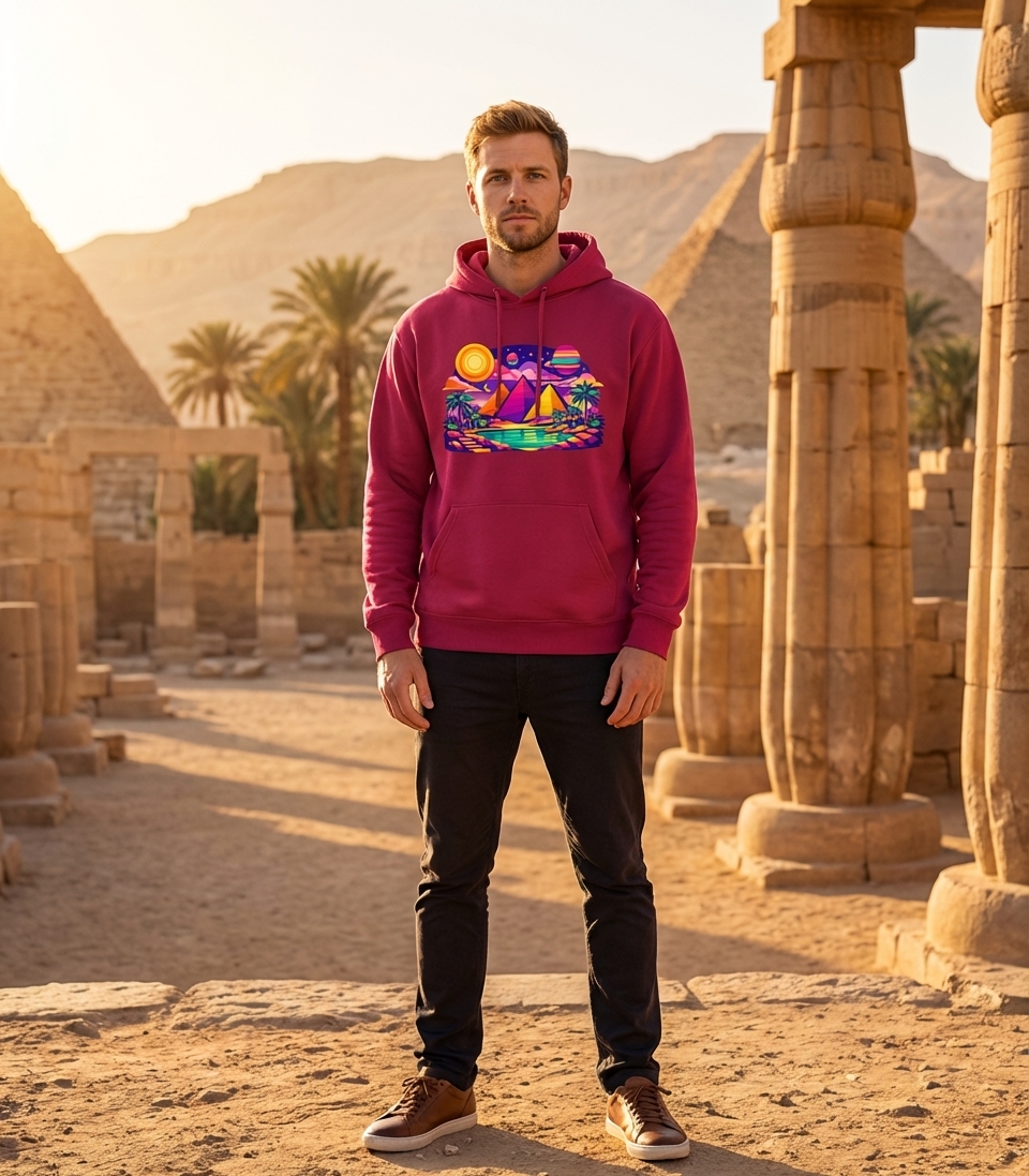 Vibrant Pyramid Landscape Hooded Sweatshirt