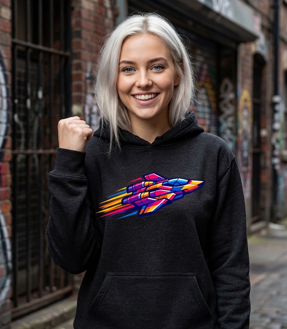 Yes! Check the style selector above to see all available options including hoodies and sweatshirts for the Vibrant Retro Space Jet graphic.