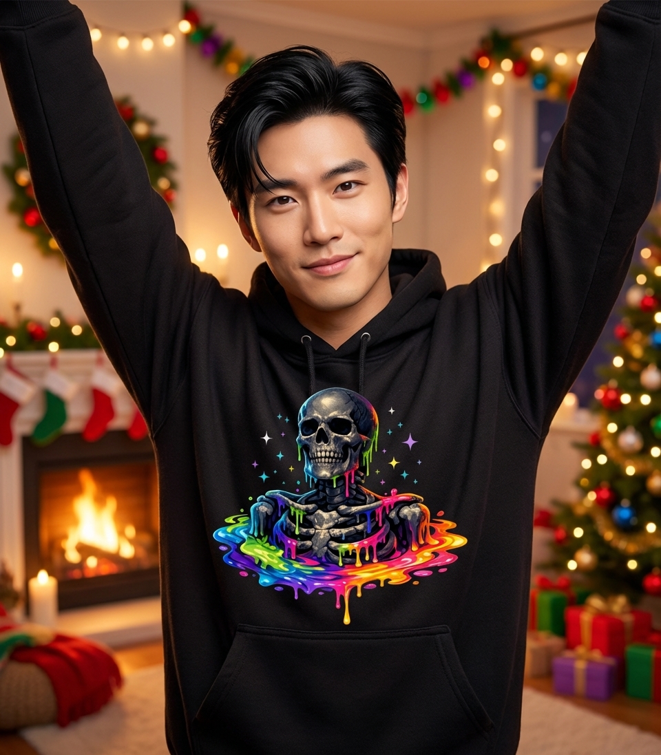 Yes! Check the style selector above to see all available options including hoodies and sweatshirts for the Vibrant Skeleton Drip Art graphic.