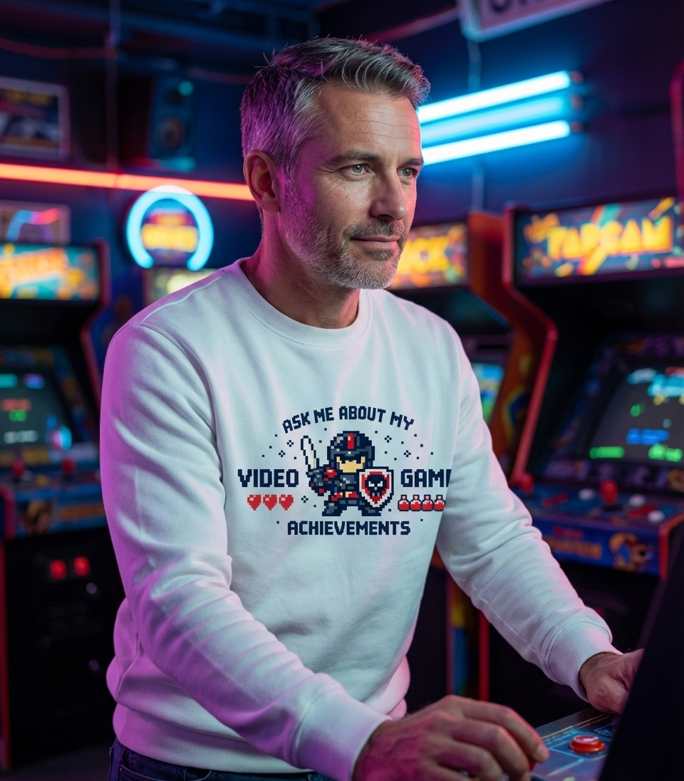 This design celebrates the dedicated lifestyle of passionate gamers who conquer digital worlds, earn countless achievements, and relish sharing their epic triumphs.