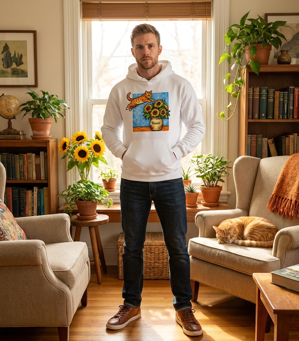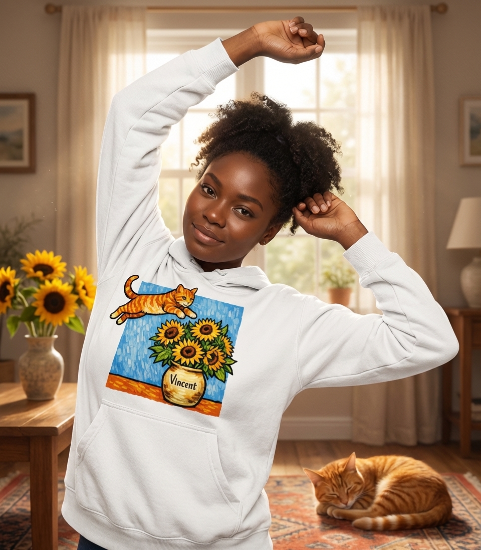 Yes! Check the style selector above to see all available options including hoodies and sweatshirts for the Vincent Cat Sunflowers graphic.