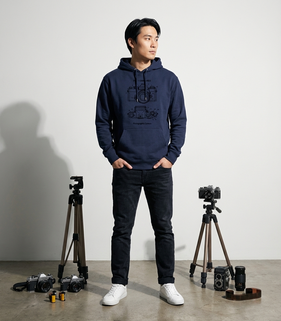 Yes! Check the style selector above to see all available options including hoodies and sweatshirts for the Vintage Camera Blueprint graphic.