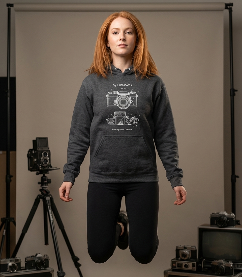 Vintage Camera Blueprint Hooded Sweatshirt