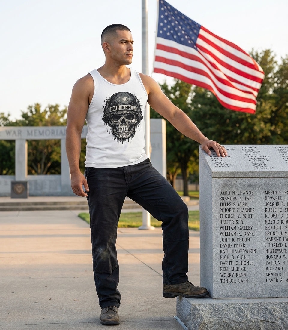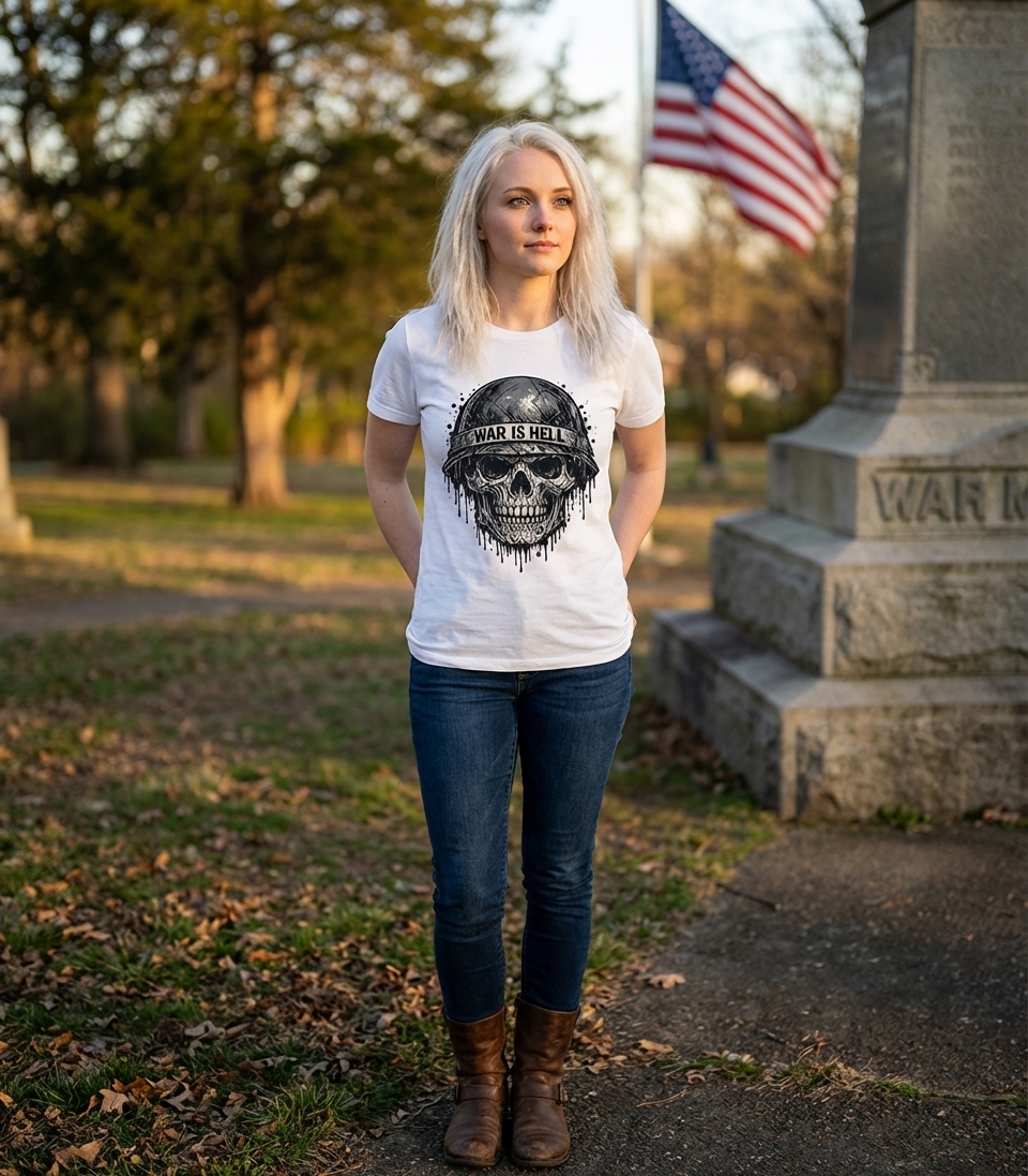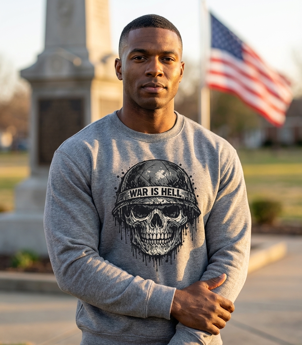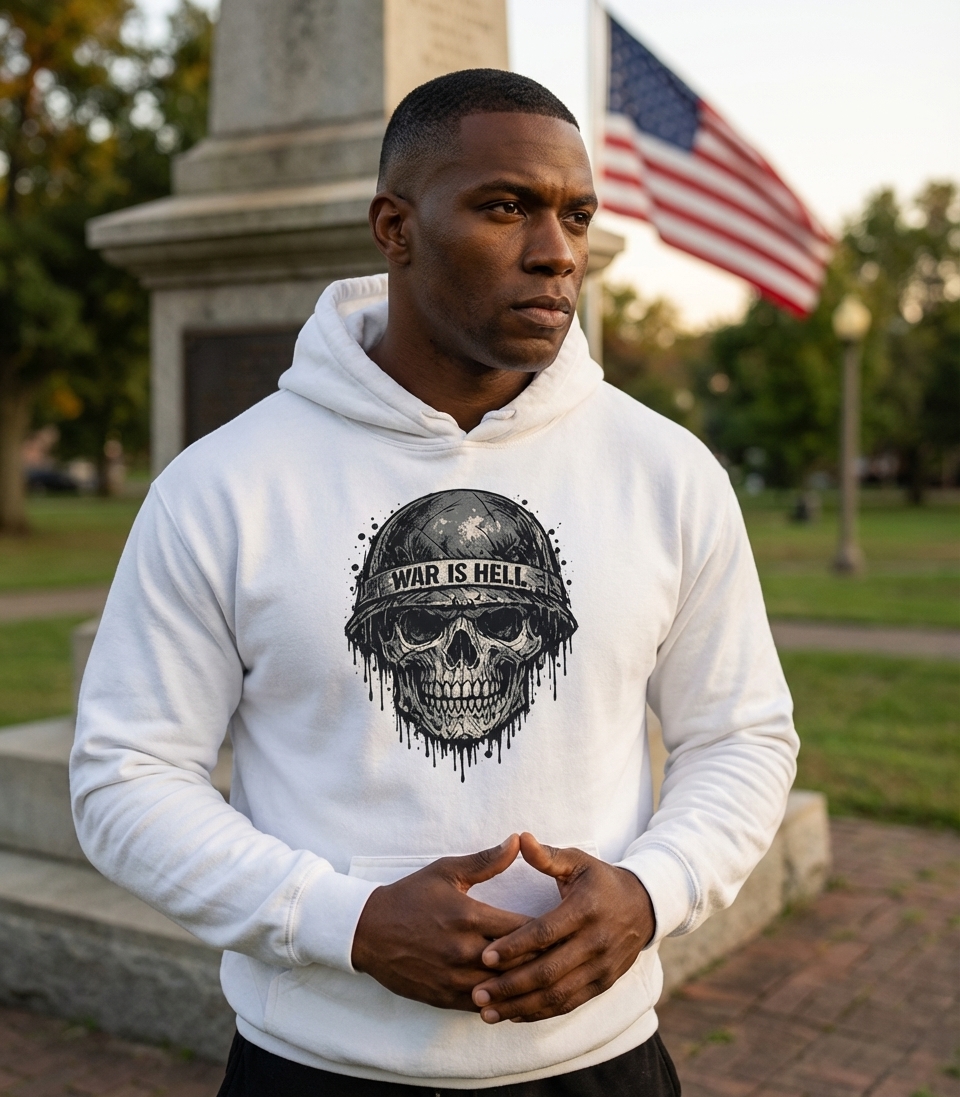 The "War is Hell" phrase captures the profound experience of those who have faced conflict, reflecting on the grim realities of battle and sacrifice.