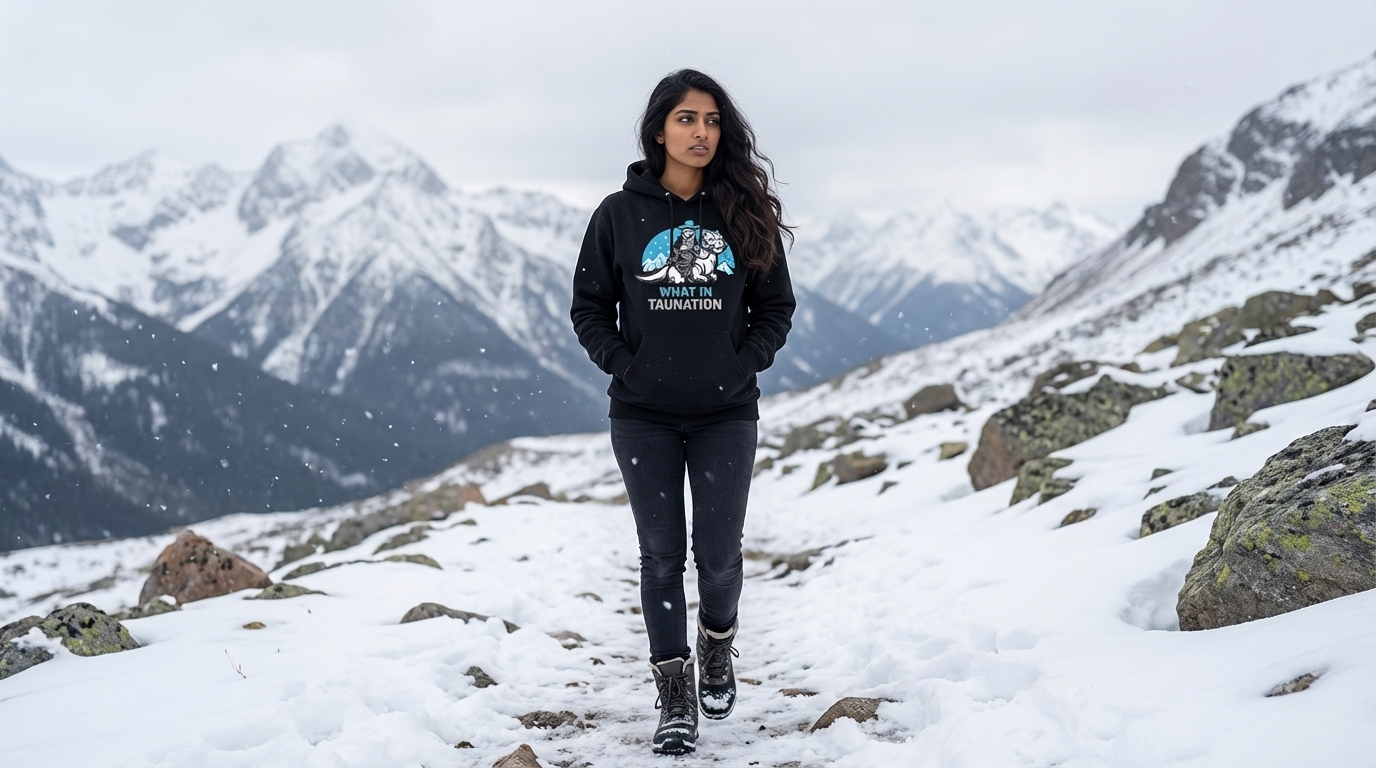 The 'What In Taunation' phrase captures the lifestyle of passionate Star Wars fans who enjoy clever puns, cold weather adventures, and a touch of rugged sci-fi charm.