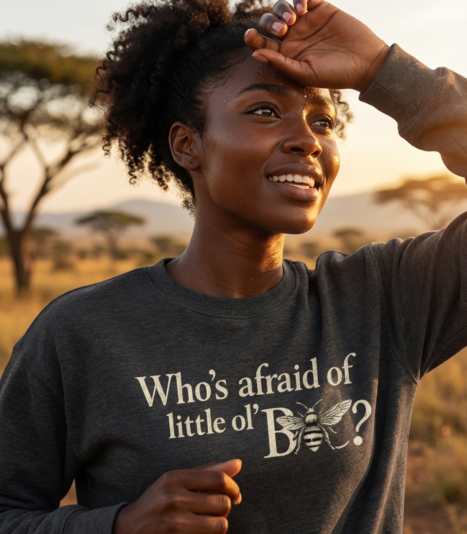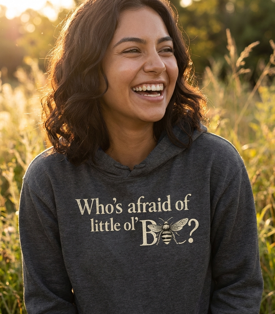 The "Who's afraid of little ol' B?" phrase playfully captures the spirit of those who enjoy clever wordplay and the charm of the natural world.