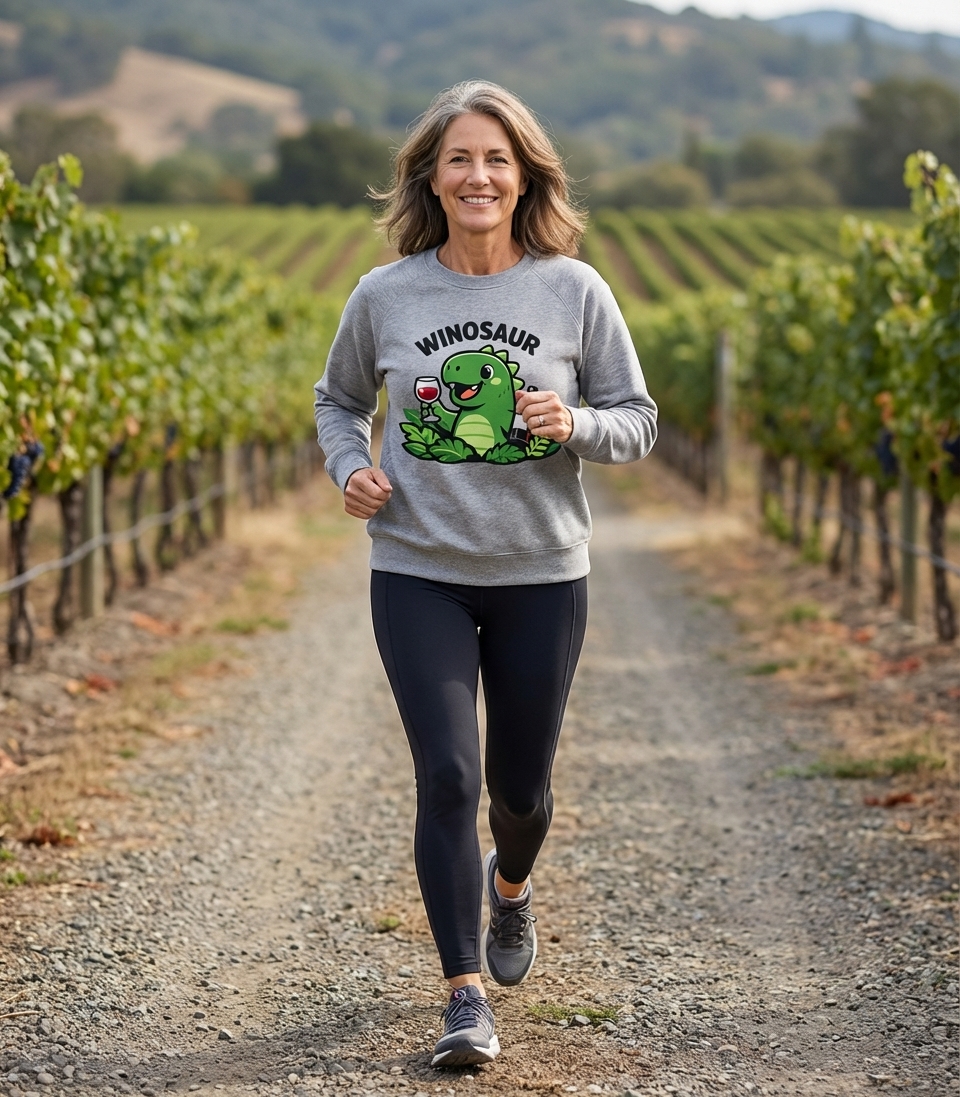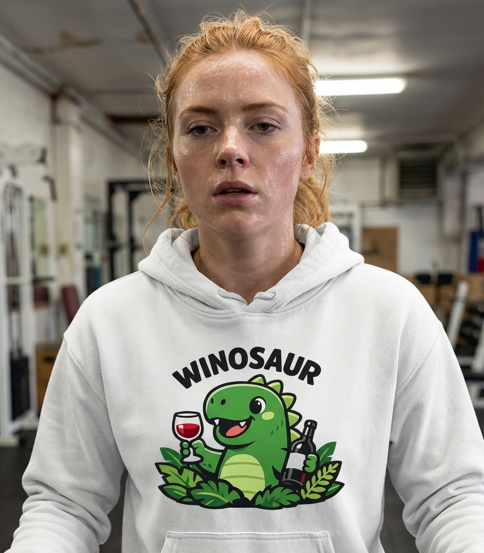 The phrase "Winosaur" is a clever and humorous portmanteau, combining "wine" and "dinosaur." It's a witty term for anyone who enjoys indulging in wine, often in a relaxed and slightly indulgent manner, playfully likening their enjoyment to a prehistoric creature.