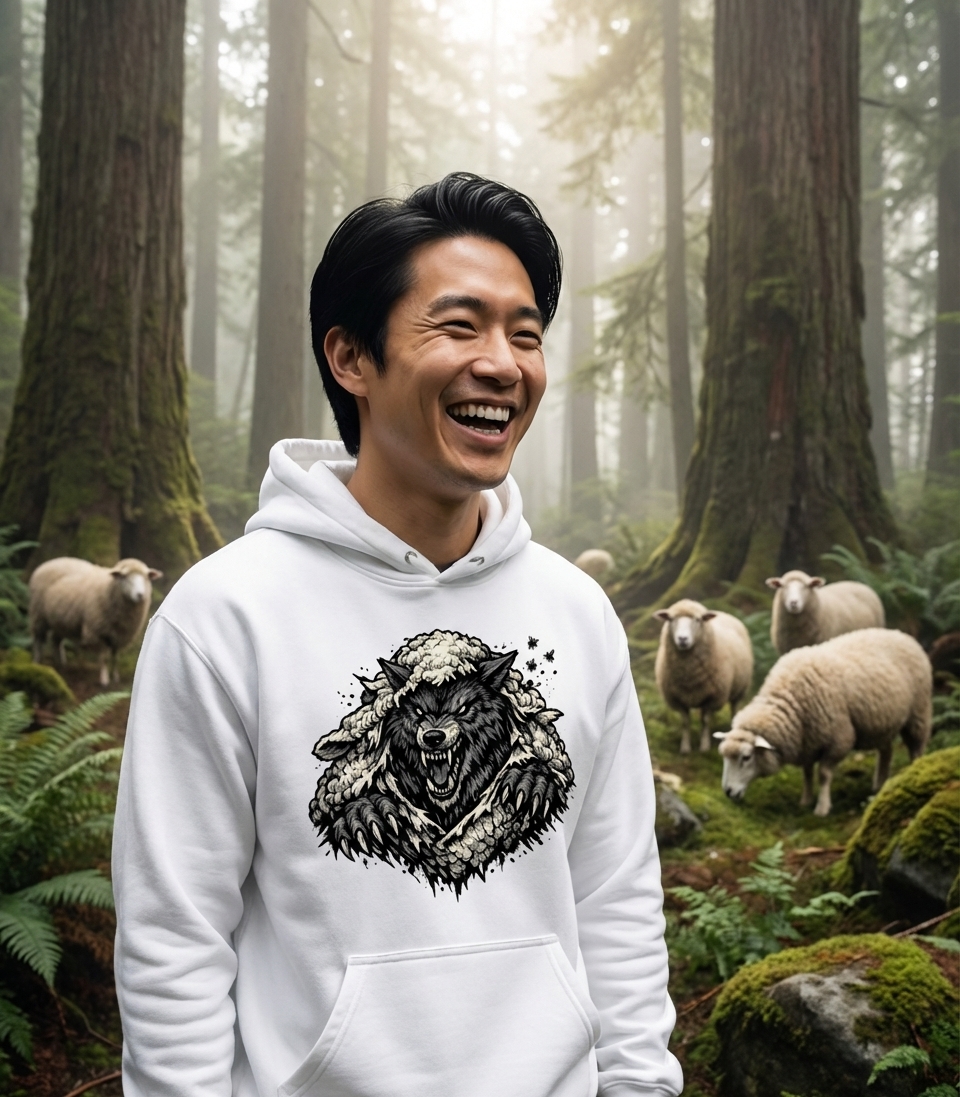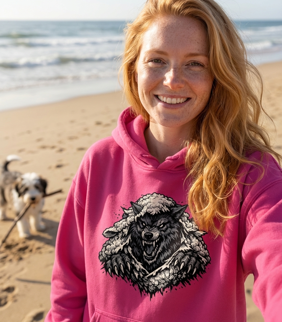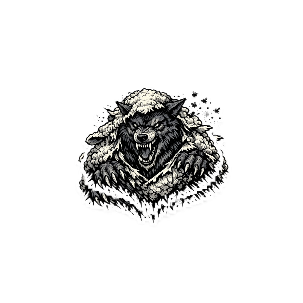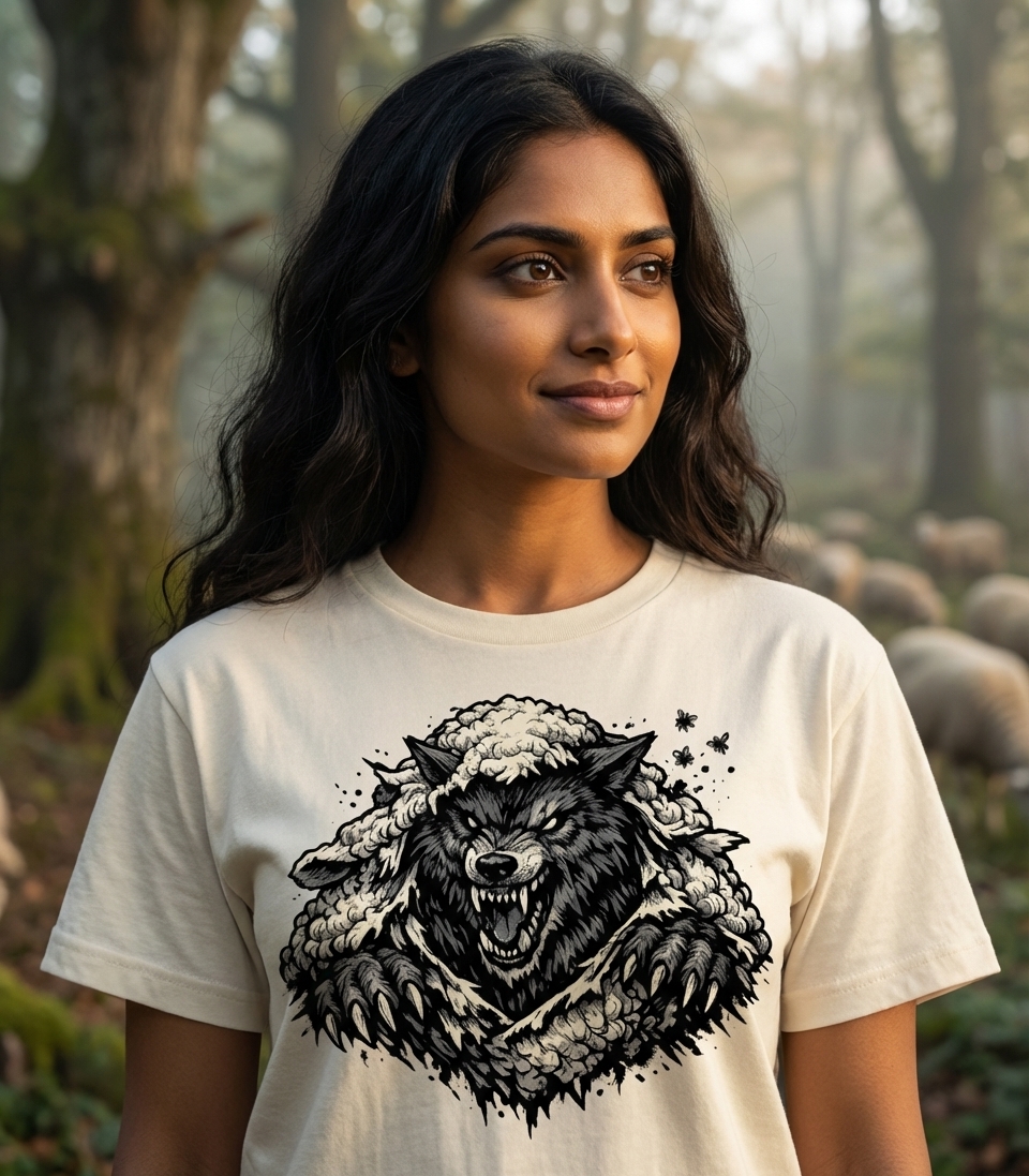 The Wolf in Sheep's Skin design captures the essence of cunning and hidden danger, perfect for those who appreciate bold symbolism and metaphorical depth.