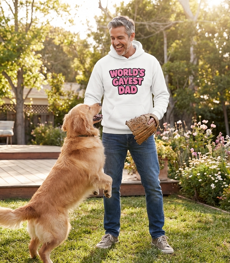 The 'World's Gayest Dad' phrase captures the lifestyle of proud fathers who celebrate their identity, love their family, and embrace joy.