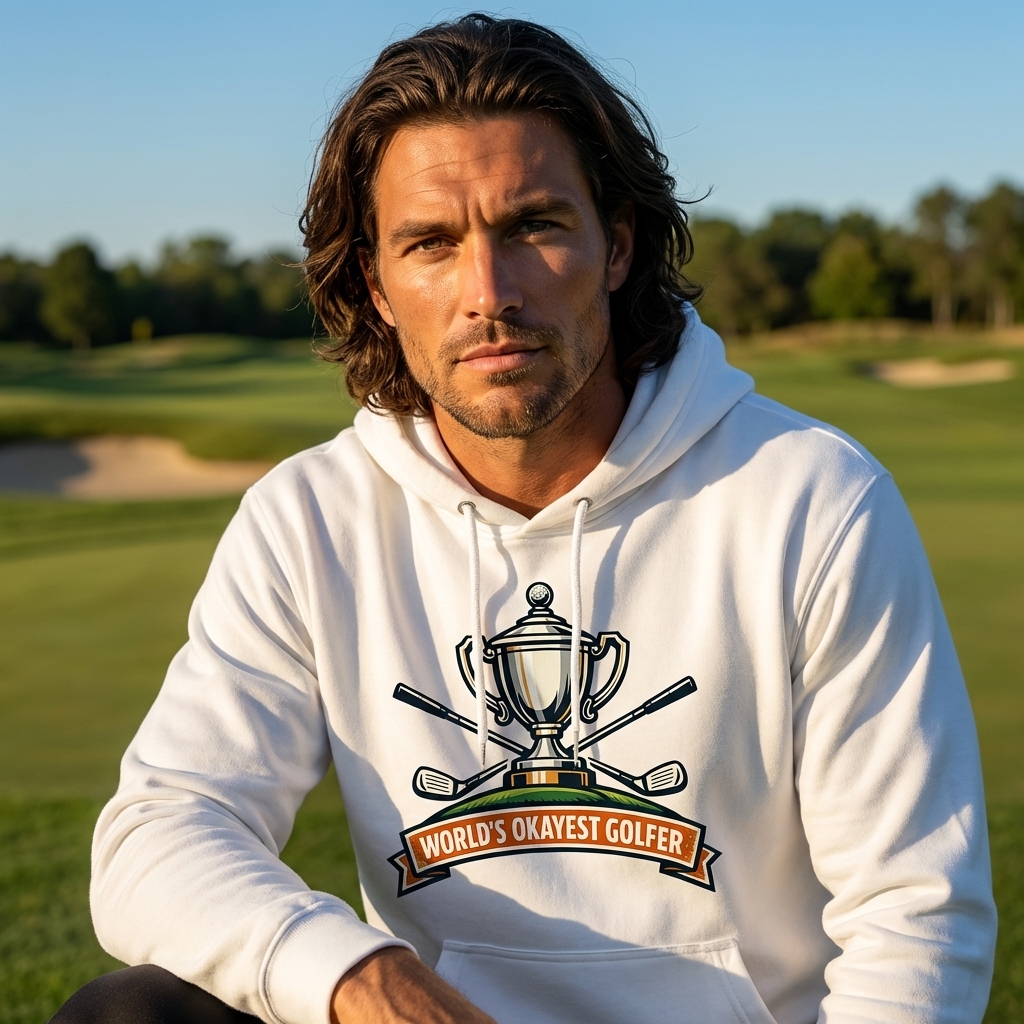 The 'World's Okayest Golfer' phrase captures the lifestyle of golf enthusiasts who enjoy the game with a healthy dose of self-aware humor.