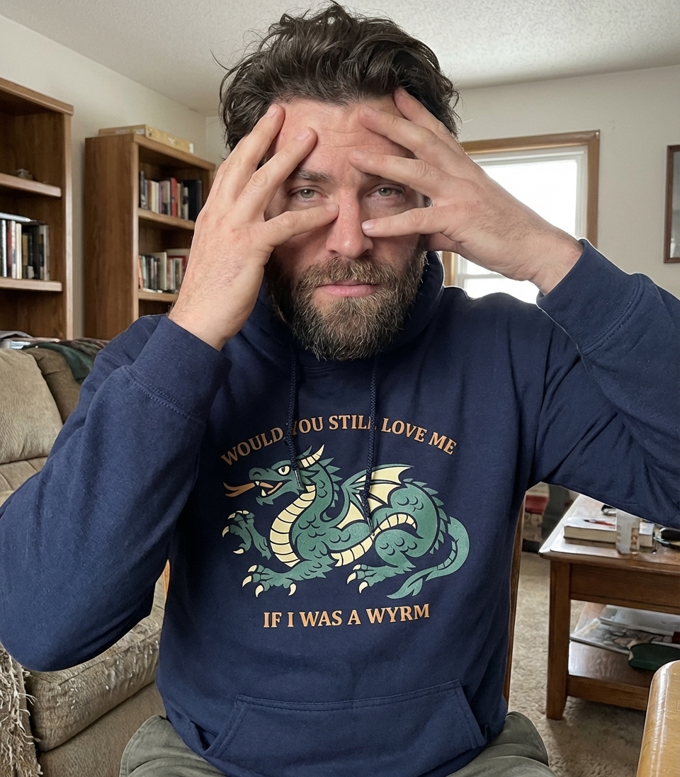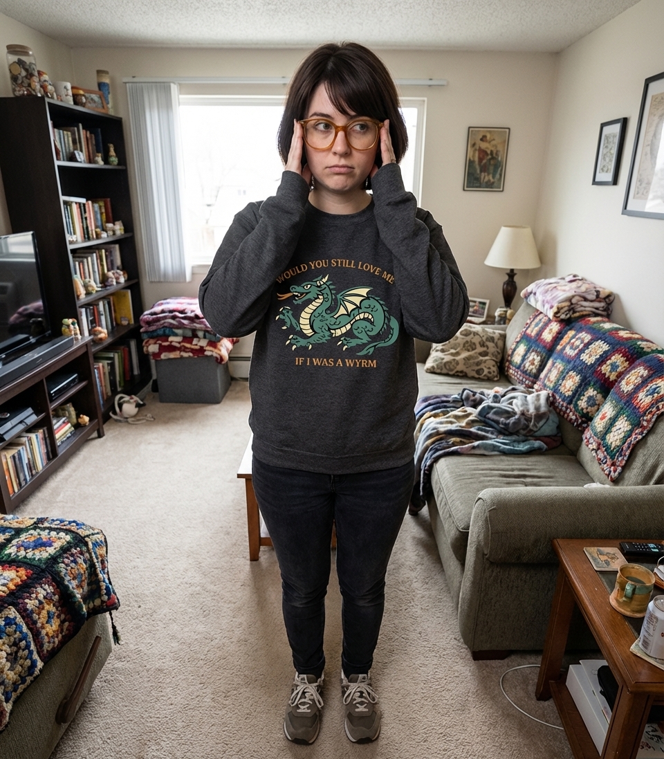 The phrase "Would You Still Love Me If I Was A Wyrm" is a humorous twist on the popular "would you still love me if I was a worm?" internet meme.