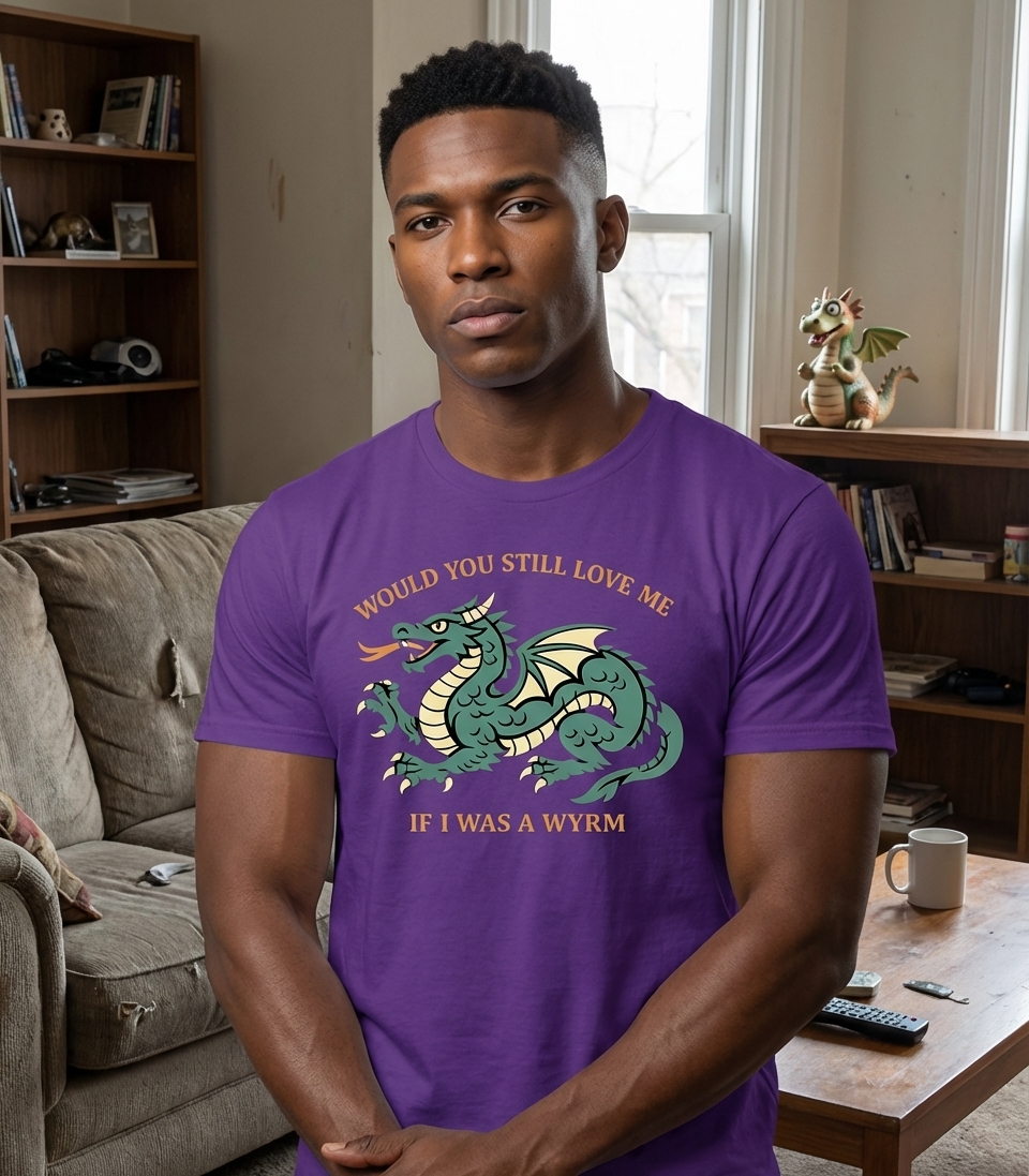 It questions unconditional affection, using the mythical transformation into a legless, often serpentine "wyrm" to add a whimsical, fantasy-themed layer to the classic relationship joke.
