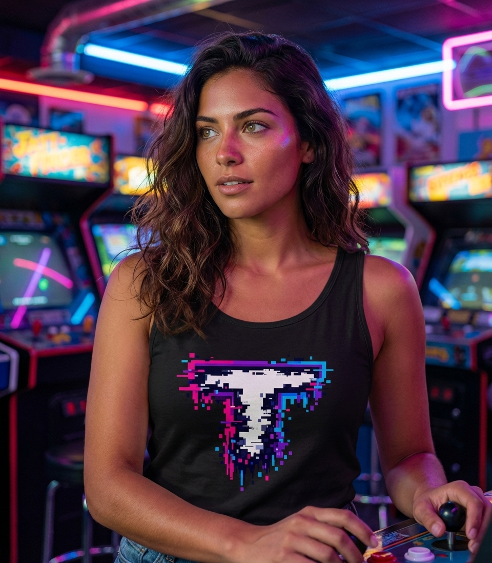 This vibrant glitch design captures the dynamic lifestyle of enthusiasts who appreciate retro-futuristic aesthetics, digital art, and modern tech culture.