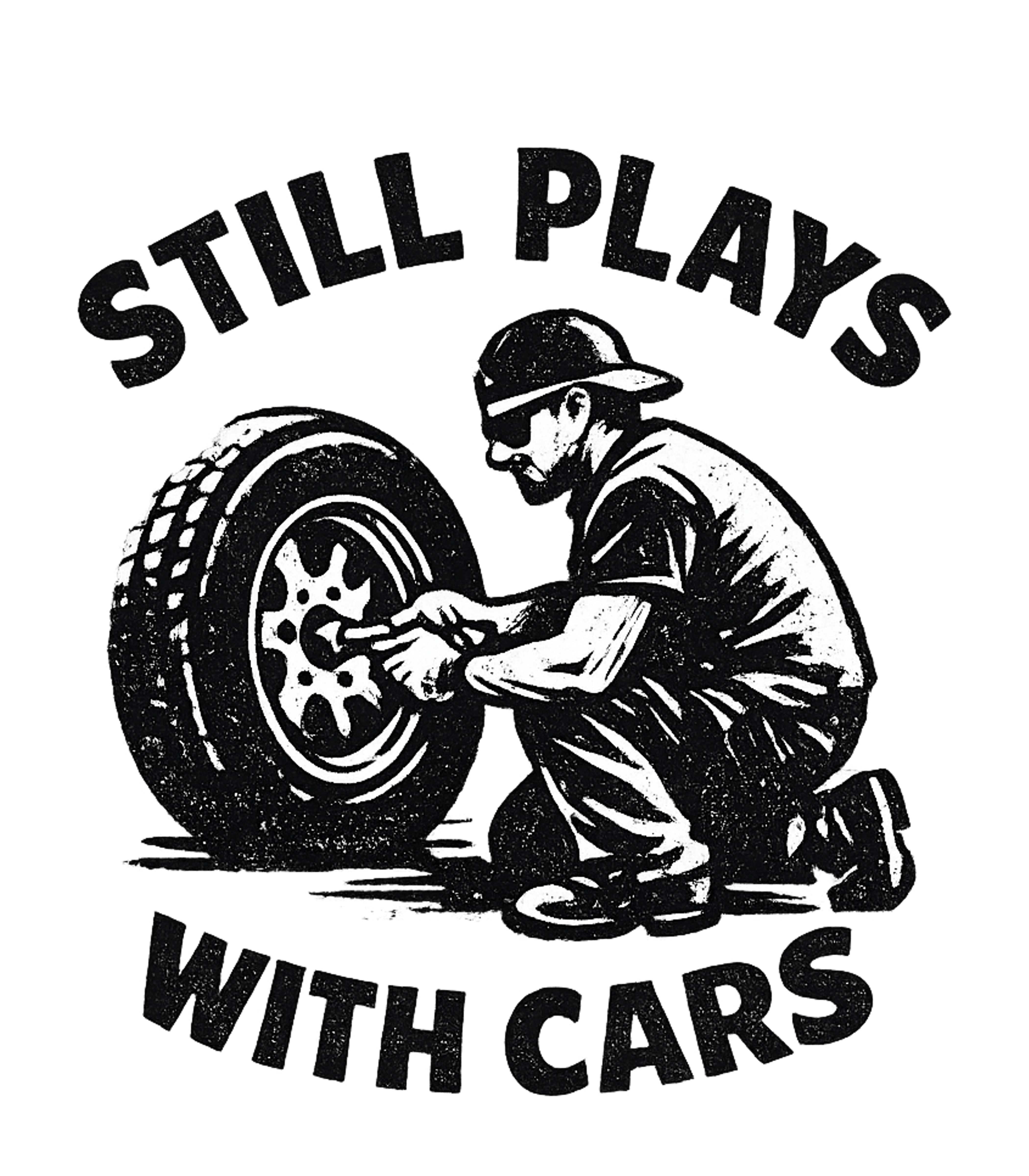 The phrase 'Still Plays With Cars' playfully highlights the lifelong love affair many people have with vehicles, well beyond childhood toys. It's a nod to those who never outgrew their fascination with mechanics, speed, and the unique culture surrounding cars. It embodies a spirit of constant engagement and hands-on enjoyment.