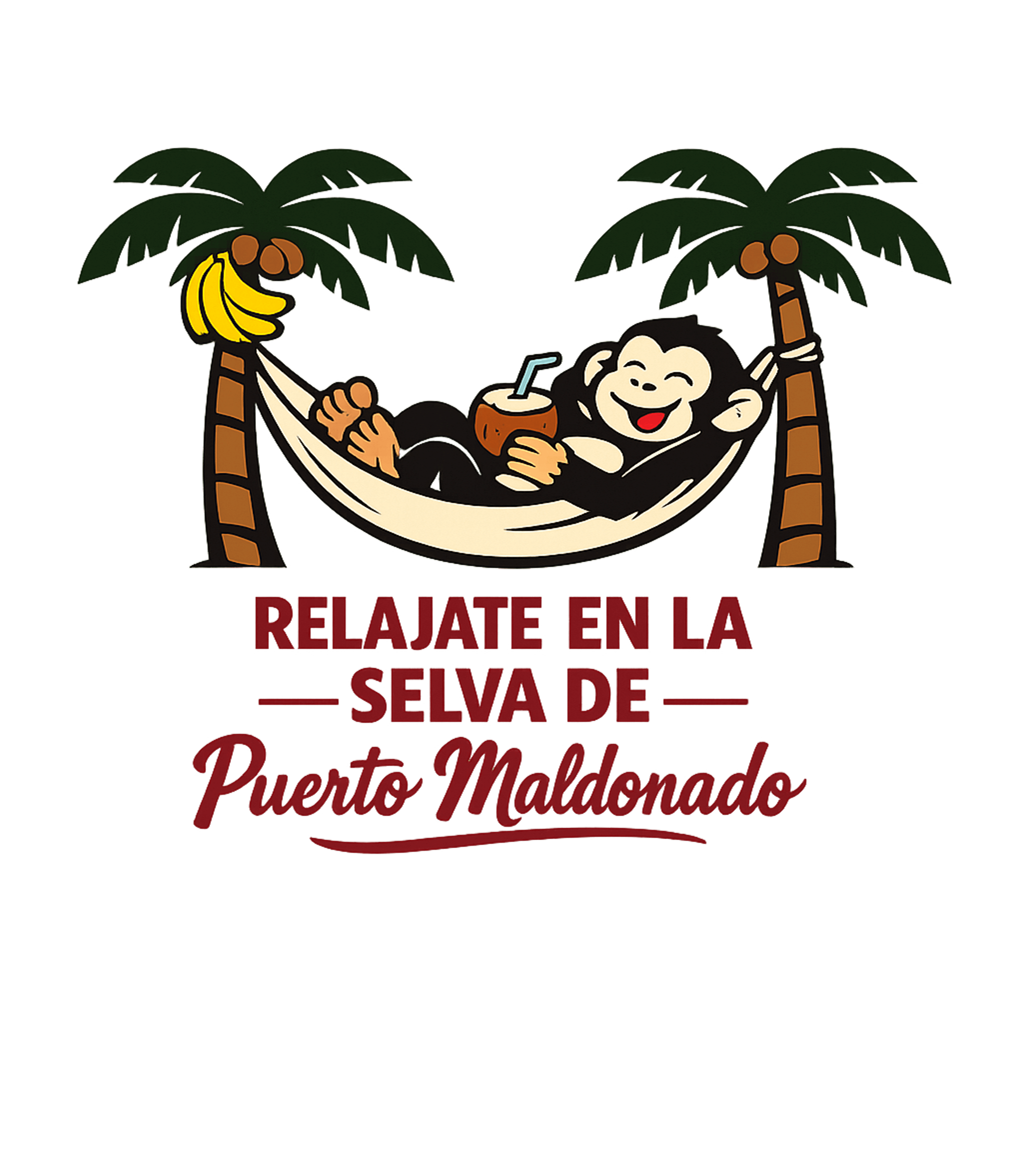 The design features a generic, friendly cartoon monkey, embodying the playful spirit of jungle wildlife often found in regions like Puerto Maldonado.
